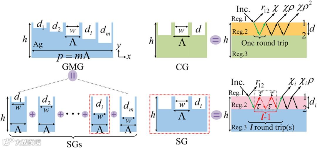 近年来科学家在相位梯度超曲面(PGM)的发展方面取得了进展,这提供了一种前所未有的方法来控制动态波或光的传播,以实现全息图,超透镜,光子自旋霍尔效应,超薄隐形眼镜和其他超薄光学器件。通常,PGM被构造为周期性光栅,其包括沿着界面在空间上重复的超晶胞,其中每一个超晶胞由m个单位单元组成(m是整数)以产生跨越2π的所需突变相移,例如在PGM的开创性工作中便是m=8,每一个超晶胞由八个单位单元组成。直观地说,超晶胞中单位晶胞的数量m不会改变PGM衍射特性的性质,只是小的m(<4)会导致衍射效率下降。然而,最近的一些实验工作表明情况并非如此,已经发现,在透射型PGM中可以观察到从相反角度(正和负)入射的声波的不对称透射,这归因于高阶衍射的损耗诱导抑制,在电磁波中通过实验也报告了类似的结果