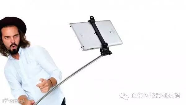 如果说常规的自拍杆还无法将你和背景完整的容纳到照片中,那么这款面向平板的自拍杆一定可以。这款平板自拍杆名为Tablet Attachment Head,是为iPad 2、iPad Air 2及更新设备量身定制的自拍杆,充分利用iPad的前置摄像头从各种不同的角度进行拍摄。