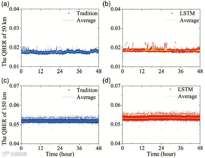 量子密码作为量子信息技术领域发展最为成熟的技术,正逐渐从实验室阶段走向商用化,有望在未来大规模网络加密通信中发挥重要作用,因而得到学术界和工业界的广泛关注。自第一个BB84协议提出以来,量子密码无论是在理论上还是在实验上均取得了巨大进展。现有量子密码系统包括相位、偏振、时间-能量编码等编码方式,其中相位编码方式应用最为广泛。该类系统在运行过程中不可避免地存在相位漂移问题,因而需要不断对发送端和接收端的相位进行实时校准。目前主流系统通过采用扫描+传输的方法来解决。该方法虽然可以实现相位补偿,但会导致量子密码系统传输效率降低。针对该缺点,王琴教授团队首次提出将人工智能与量子密码控制系统相结合,利用LSTM网络主动预测系统相位漂移大小,进而实现主动反馈与控制;同时通过固定时间间隔对网络细胞状态进行更新,使量子密码系统始终保持稳定的高效率运行状态。该方法在不提高系统硬件复杂度的前提下大幅提升了量子密码系统传输效率。此外值得提出,该方法的适用范围不依赖于某种协议或编码方式,原则上同样适用于其他任意量子密码协议和任意编码系统,为未来开展大规模量子通信网络应用提供新的研究思路与应用方法。