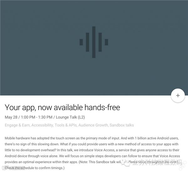 谷歌是这样描述 Voice Access 的:触控显示屏是移动硬件设备的主要输入模式。Android 设备活跃用户数已达 10 亿,并且没有任何增长放缓的迹象。如果说,你可以以很少甚至没有开发成本的情况下,为用户提供一个全新的方法来访问你的应用程序,这将如何?在这个对话中,我们将介绍语音访问服务,借助该服务,任何人仅通过语音便可进入其Android设备。我们将注重开发人员可以遵循的简单步骤,来确保语音访问服务能够让他们的应用程序具备最佳的使用体验。”