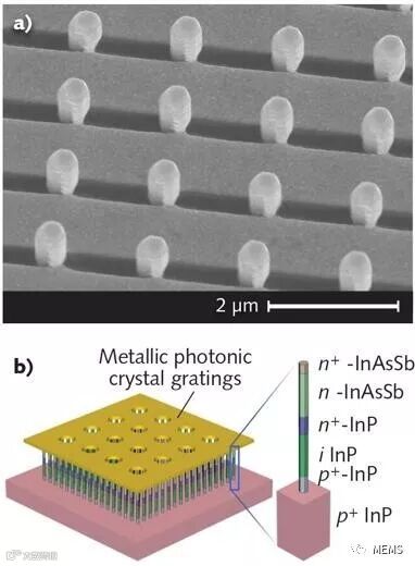 磷化铟衬底上的InAs和InAsSb纳米线可形成适用于焦平面阵列的室温SWIR或MWIR光电二极管。