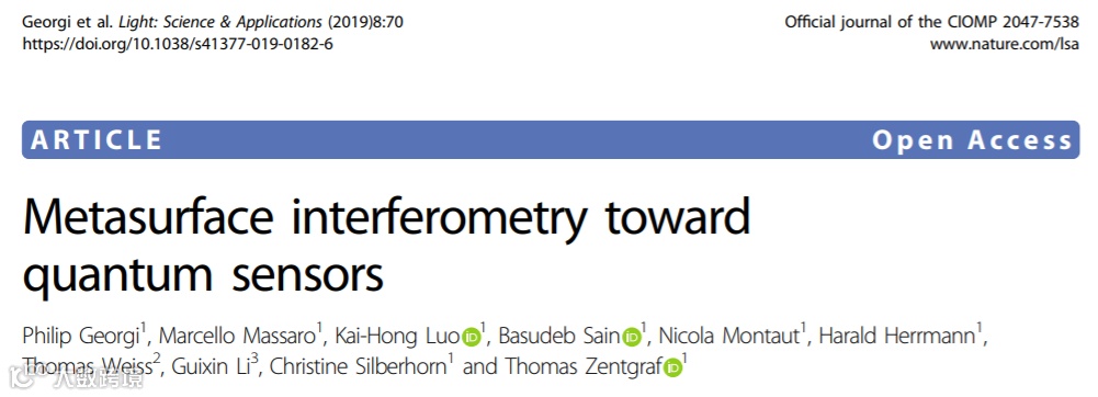 1. P. Georgi et al. Metasurface interferometry toward quantum sensors. Light: Science & Applications 8: 70 (2019).