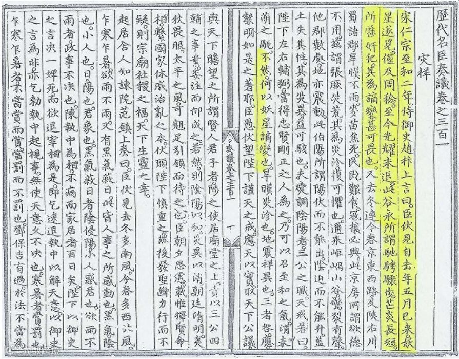 图:《历代名臣奏议》中赵抃对1054年被观测到的超新星的描述。