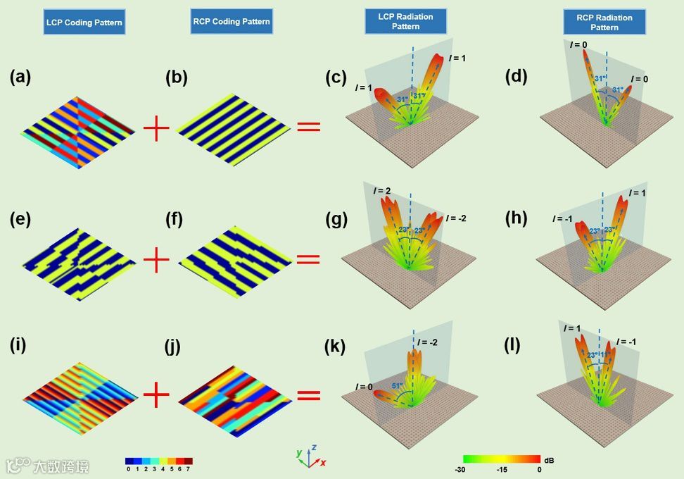 近年来,为适应通信领域对信道容量需求的飞速增长,多输入多输出(MIMO)技术、可重构技术及携带OAM的涡旋波束应运而生。单个通信信道中可以传输工作在相同频率的多个正交模式的涡旋波束,这将极大地提高通信容量与数据传输速度,因此已成为当前的研究热点之一。近期,已有研究人员利用几何相位超构表面实现了圆极化电磁波到涡旋波束的调控,但是几何相位超构表面对两个正交圆极化电磁波的相位响应恰好相反。当左、右旋圆极化电磁波分别照射于这种类型的超构表面时,由超构表面产生的涡旋波束的拓扑模式数恰好相反。因此,如何实现正交圆极化电磁波到涡旋波束的完全独立、任意、去耦式调控仍然是一个亟需解决的关键问题。