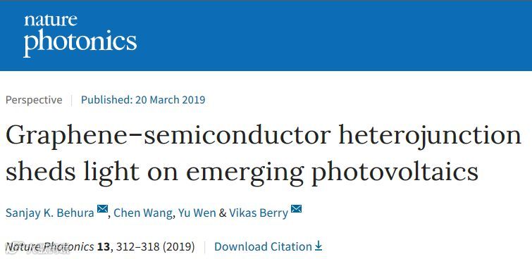Behura, S. K.; Wang, C.; Wen, Y.;Berry, V. Graphene–semiconductor heterojunction shedslight on emerging photovoltaics. Nature Photonics, 2019.