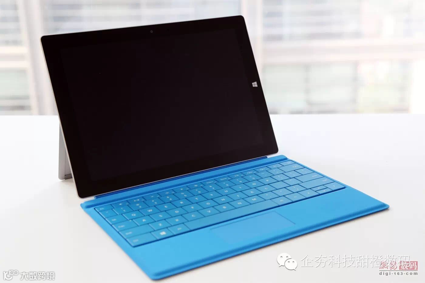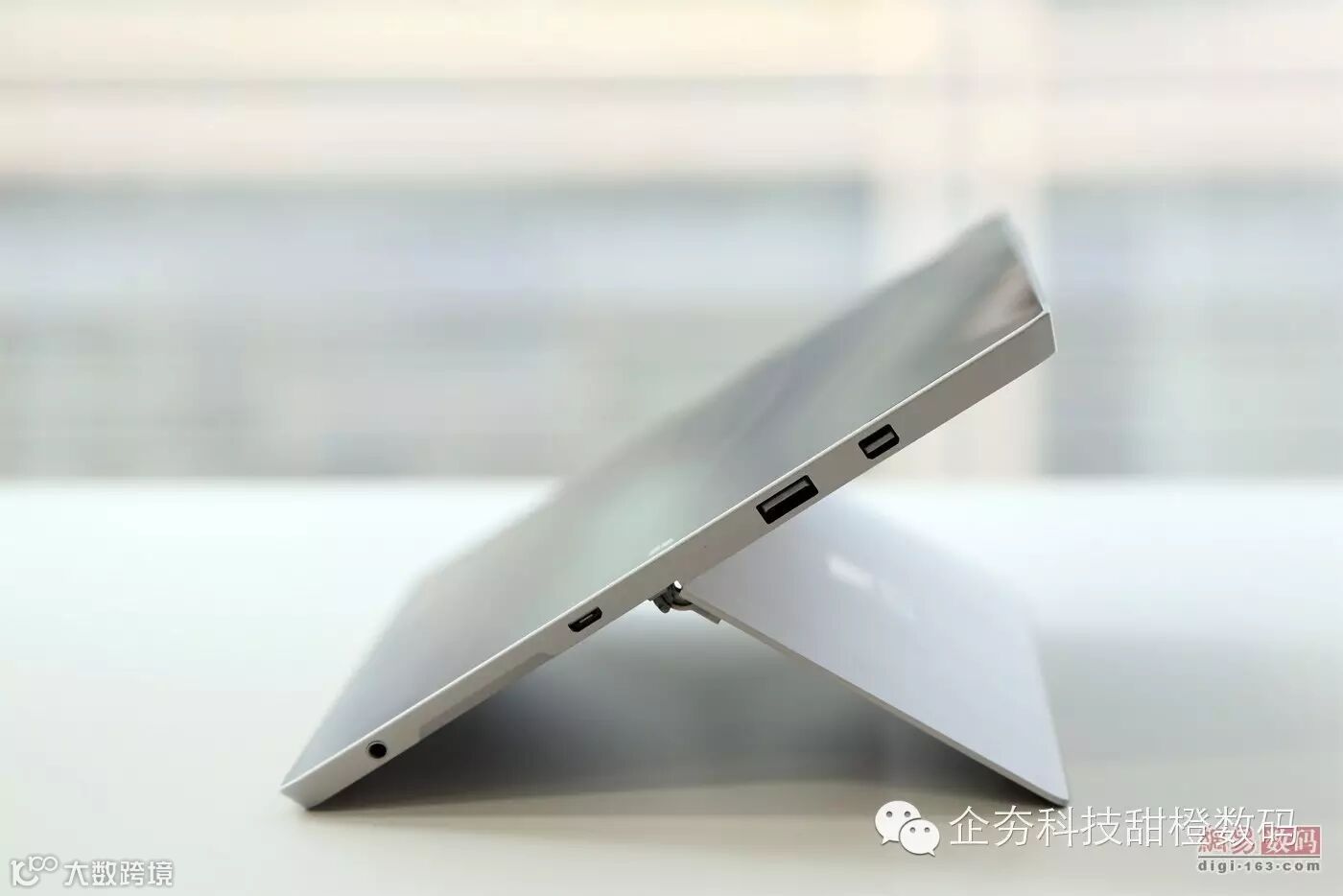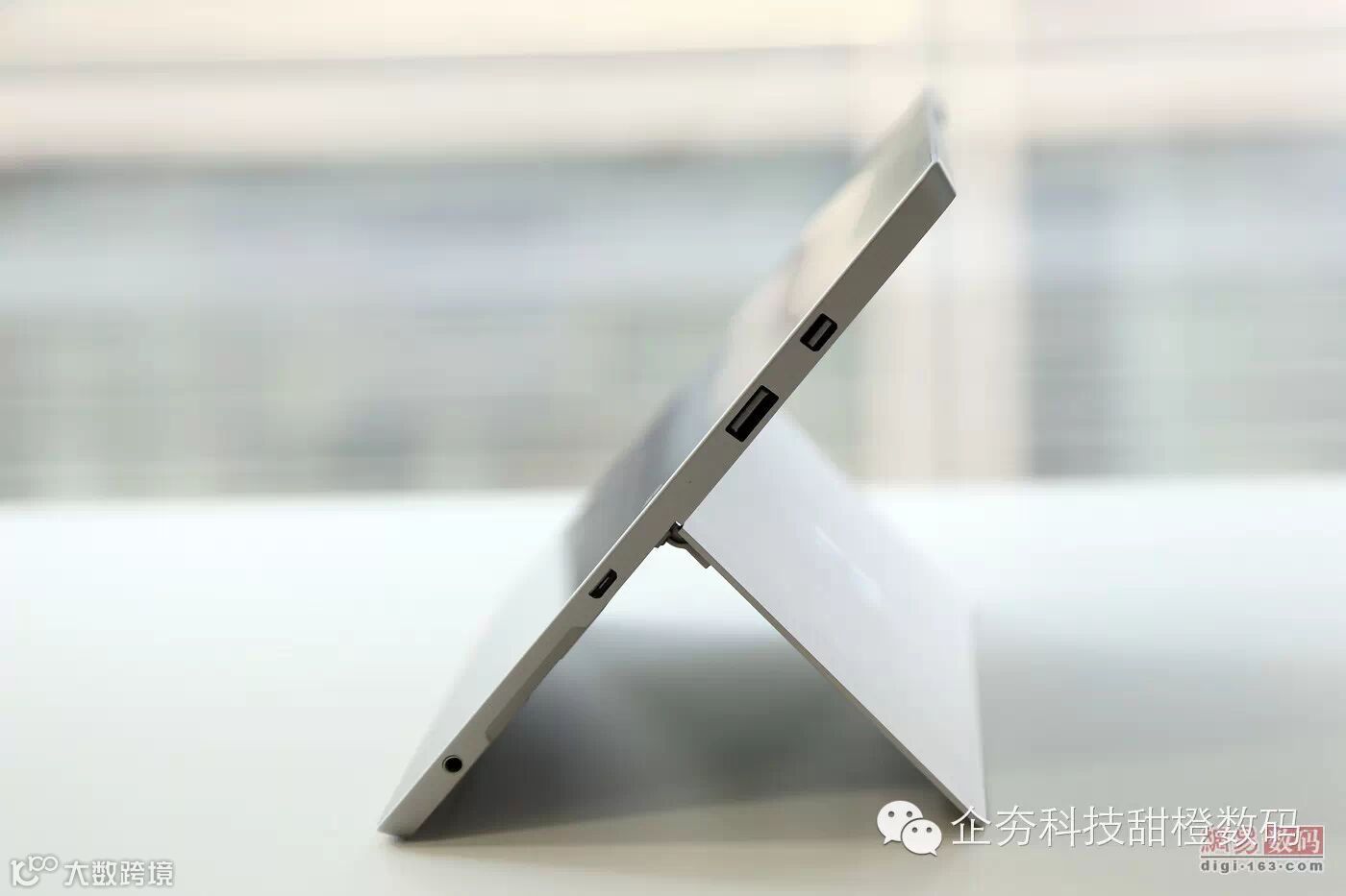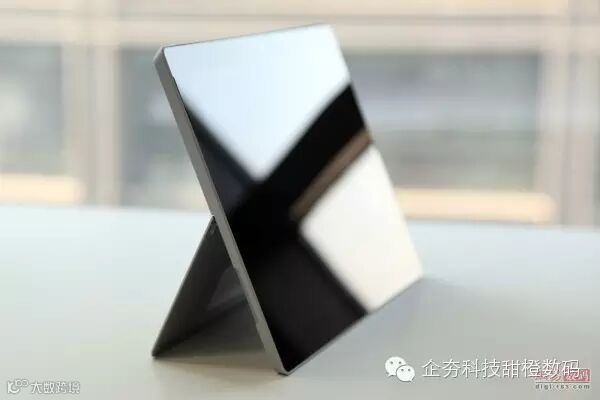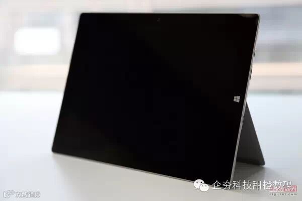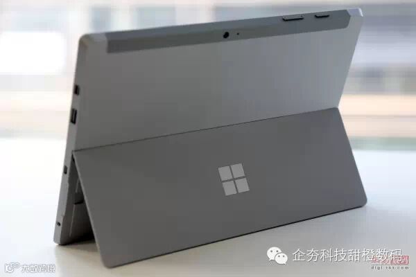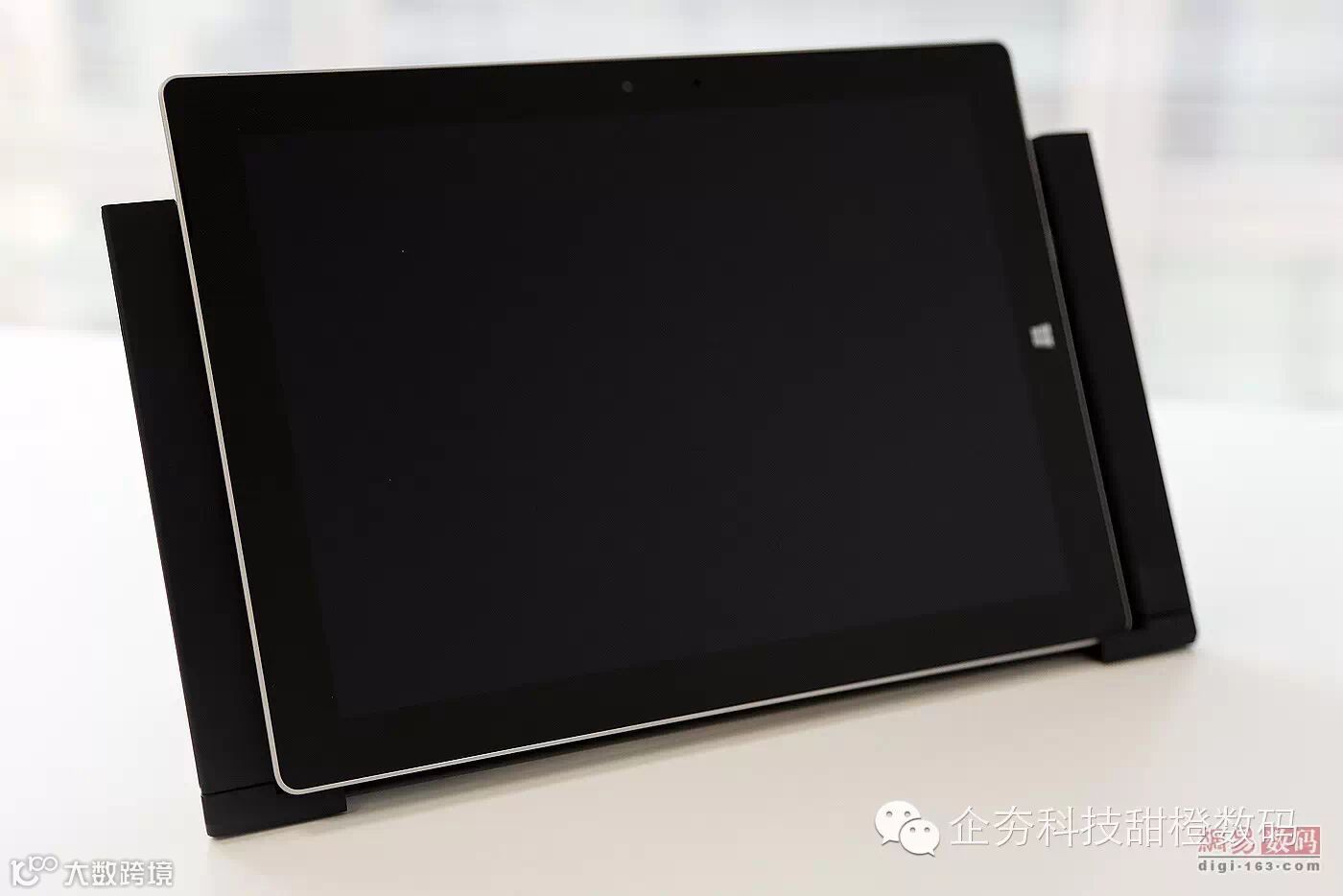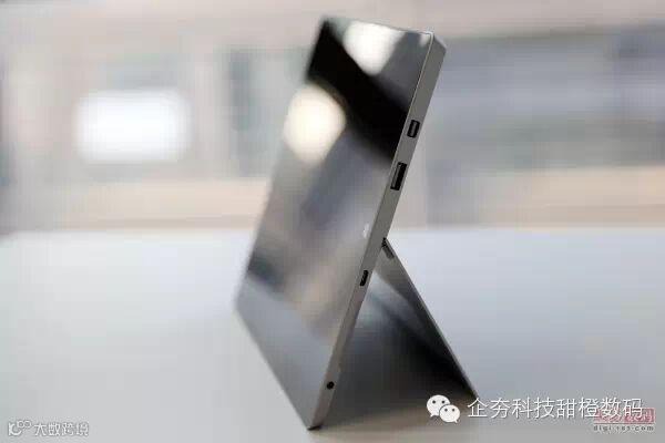 支上支架才是我们熟悉的Surface!其实说到外观,小编到觉得除了home键的位置,Surface 3到是和Surface 2比较像。Surface 2是10.6英寸,3是10.8英寸,前者是16:9,后者是3:2。这小小的变化大大提高了纵向模式Surface 3的可用性,可以再使用平板娱乐时还兼顾商务办公。