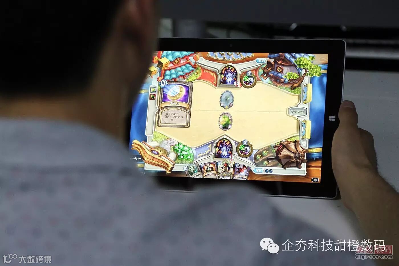 小编模拟用 Surface 3游戏场景。在试用Surface 3搓炉石的时候感觉还是会有些挑战,机身温度比较高,保守估计在40度以上。