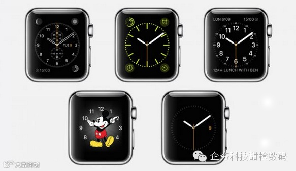 根据苹果官网,Apple Watch提供了9个默认表盘。不过,第三方开发者使用WatchKit可能会为Apple Watch开放诸多表盘。