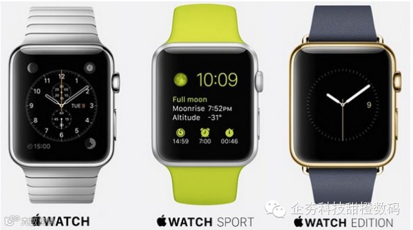 苹果智能手表采用相同的矩形外观设计,四角磨圆。但是,根据材质的不同,这款设备又可以分为三个不同版本:Watch +Sport + Edition。