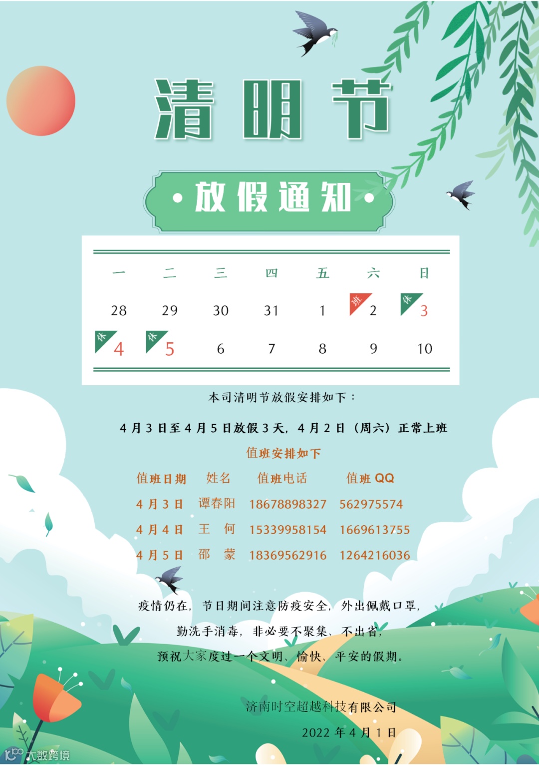 导读:2022年清明假期值班安排时空没有客户,只有合作伙伴:请联系我们: