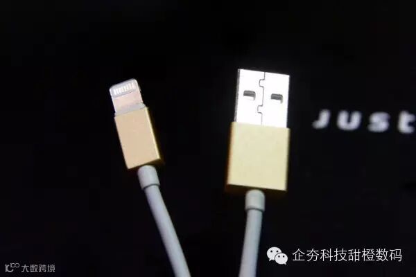 顾客还可以查看 USB 一端的端倪,正版的线缆 USB 壳上的联动装置是呈梯形的,且距离两边的距离也是一样。正版的线缆的 USB 连接口也是金色,且接口平滑和一致,绝缘体统一而平整。