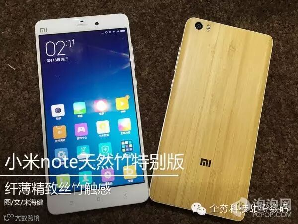 日前,小米公司推出小米Note天然竹特别版,官方宣称这款小米note在外观与工艺更进一步的同时,又拥有了天然竹子的手感和独一无二的纹理。除此之外,小米note的机身配置与普通版本并没有过多区别,现在我们已经抢先拿到了这款特别的小米note,现在我们就来欣赏下它的真机实拍吧。