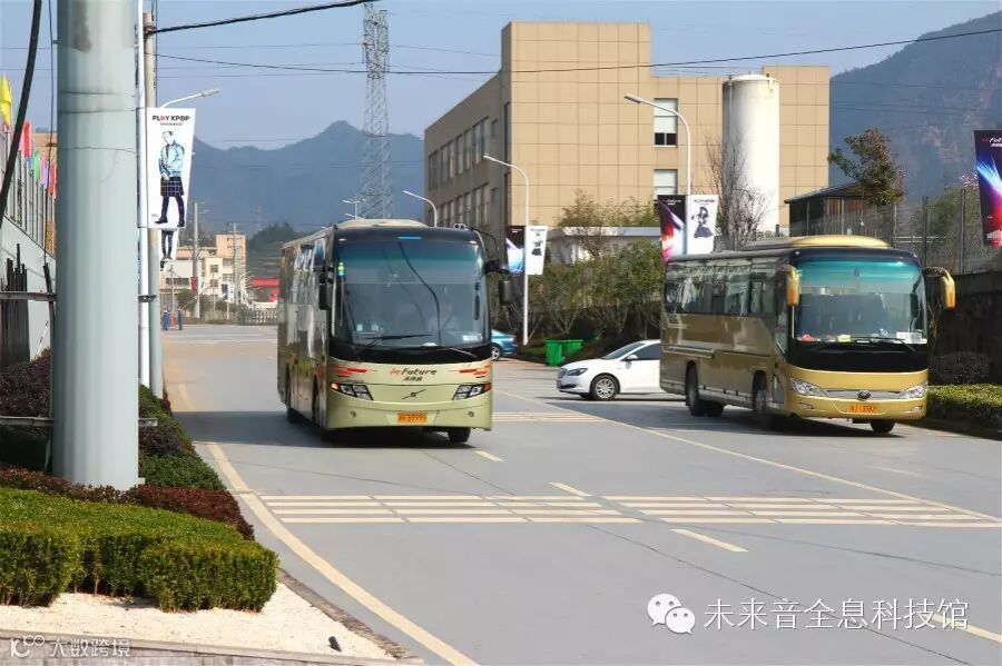 未来音专属大巴车于下午2点20分驶进未来音停车场,载着二十多家旅行社负责人员的大巴车到了!