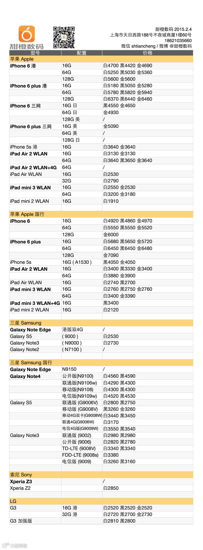 iPhone 6 及 plus 的港版今天继续保持小幅震荡,幅度在 1、20 左右,国行版较为稳定,日版有少量补货到,美版存货继续减少;iPad Air 1 价格小幅反弹,iPad mini 3 也是需求看涨;三星 Galaxy 各款也出现了幅度不大的涨跌。