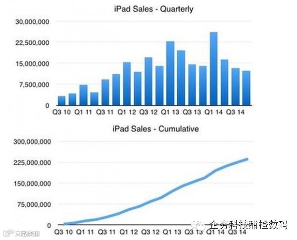 图表显示,iPad主宰平板销售的时代已经过去,iPad似乎有些精疲力竭,人们不再竞相购买iPad。无论是平板电脑升级周期超过智能是猴急,还是人们对平板电脑失去了兴趣。无论哪种原因,对于苹果来说,未来一年其都将面临挑战。