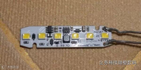 小米LED随身灯内部是白色的PCB,可用来反光;内置6颗0.2W高亮LED,合计12W;线路板的设计非常简洁,布局有序,做工精致。每颗LED灯珠都非常的硕大,能带来更高的流明。