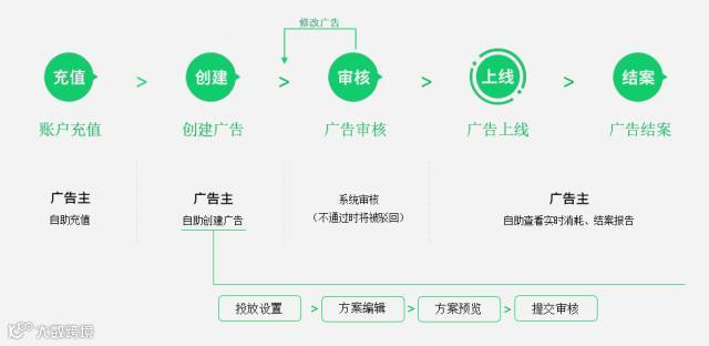 投放一条朋友圈广告上线,须经历以下步骤: