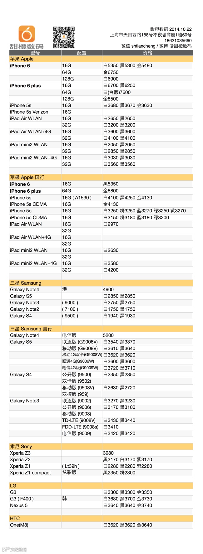 iPhone 6 及 plus 断货升级,价格也是随之水涨船高,幸有少量台版及国行版入市,但远水仍难解近渴;除了 iPhone 外其实三星、索尼、HTC 的旗舰机型价格均是稳中有降,建议考虑;iPad Air 及 iPad mini2 又是不声不响降了 50 左右。