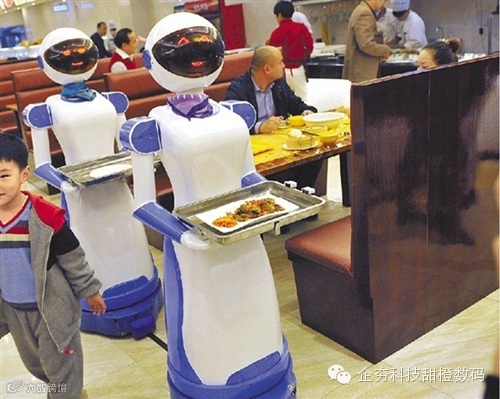 在宁波慈溪一餐厅,顾客点了菜,送餐的不是服务员,而是一台笑呵呵的智能送餐机器人这出现在了慈溪一家餐厅里。走进这家餐厅,便看见两个1米多高的机器人正 在餐厅里忙碌:她们端着顾客点的食物,在餐厅里滑行前进,到点餐的餐桌,会自动停下来,用普通话向顾客播报“您点的餐,请慢用”。