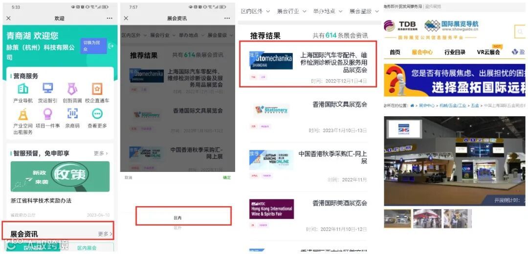 ▲进入首页点击展会资讯查看更多,可以根据展会地点、行业、星级等进行筛选。点击进入展会,可以链接到展会详情页面。
