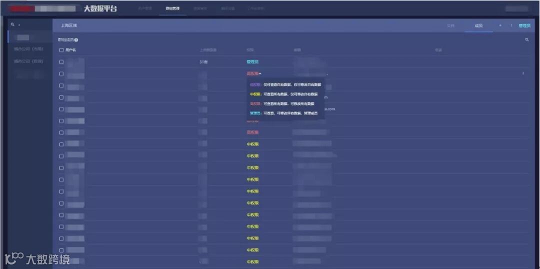根据数据的分管部门不同,平台中建立了不同的群组,并为所有成员设置了查看和修改数据的权限。目前平台中包含“城市公司(市场)”和“城市公司(投资)”等群组。其中,市场组主要负责市场数据的管理,投资组主要负责土地数据的管理。同时,通过数据的分享功能,市场组与投资组可以相互查看数据。