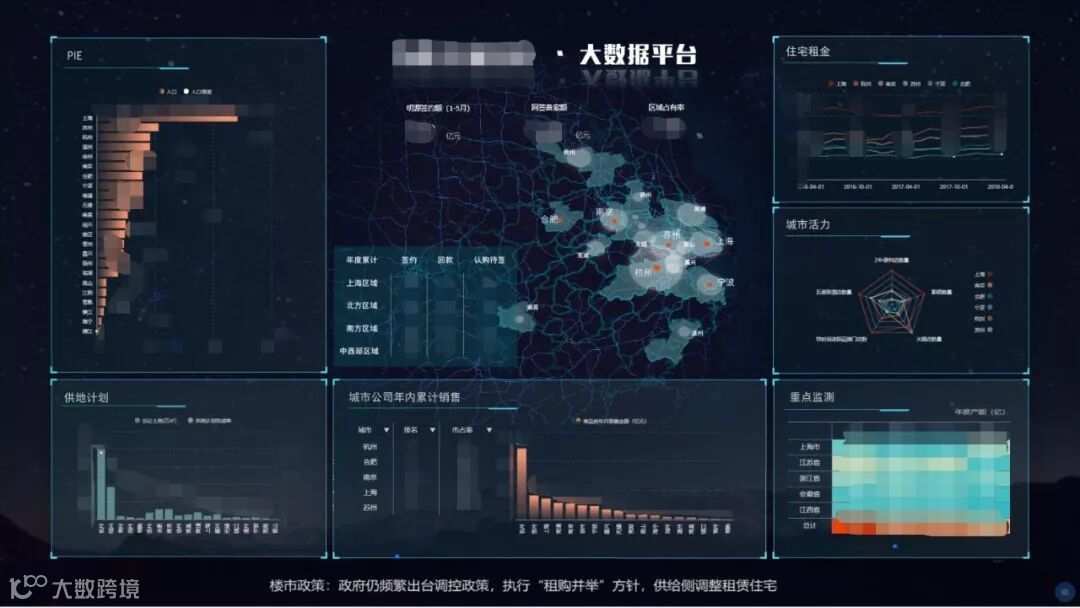 平台整合了各城市的宏观指标数据、市场数据以及雨林业务数据。城市宏观数据涵盖人口、经济、产业方面的宏观指标;市场数据包括土地市场、一手房市场和二手房市场的数据;雨林业务数据主要为教育、养老、商办及租金数据。
