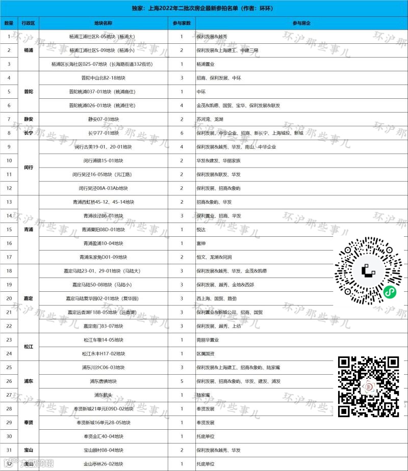 报名房企:新长宁、中华企业、新城、保利发展、上海城投、招商