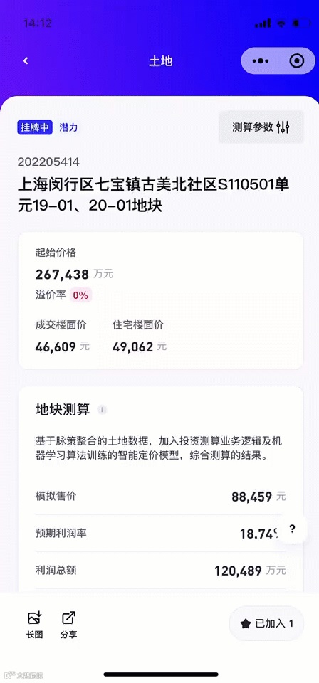 1、闵行古美19-01、20-01地块:利润率11%+