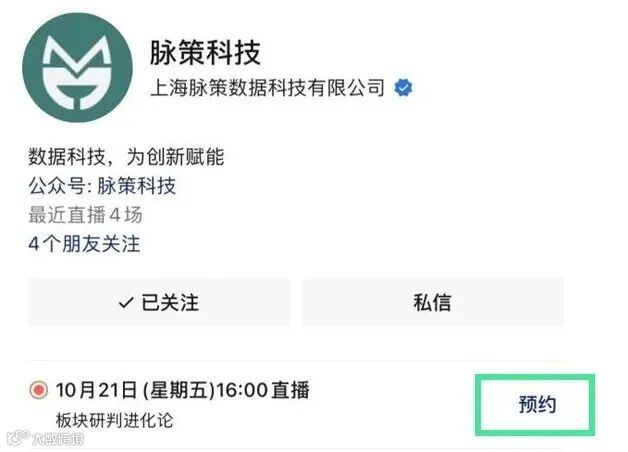 扫描海报上的二维码进入「脉策科技」视频号,点击页面上的预约按钮。