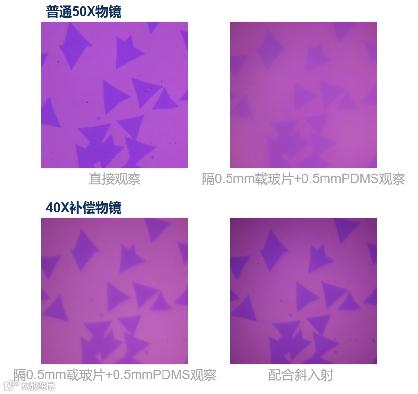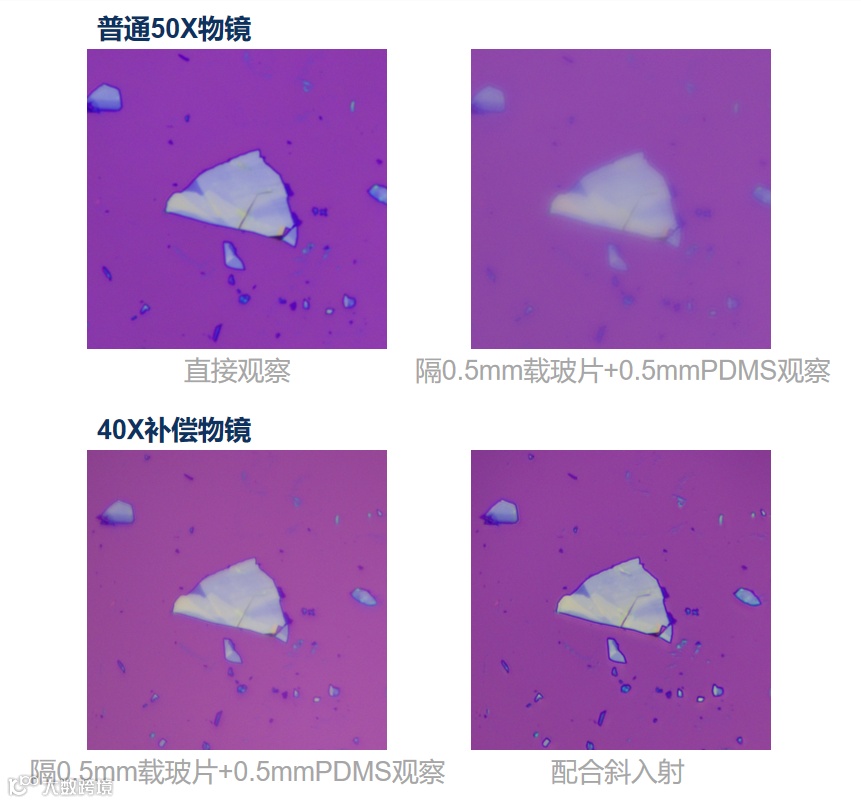传统可调像差补偿物镜虽灵活,但操作门槛高、耗时长。迈塔光电新推出的40X像差固定补偿物镜,专为标准载玻片设计,傻瓜式操作,无需调整,上手即用!无需反复调节补偿环,只需将物镜旋入光路,并使用迈塔光电配套提供的0.5mm载玻片及定制夹具,秒速获得清晰、高对比度的像差图像,配合斜入射功能,可使样品表面成像细节更清晰。真正的“即放即看”,把宝贵的时间还给科研本身!