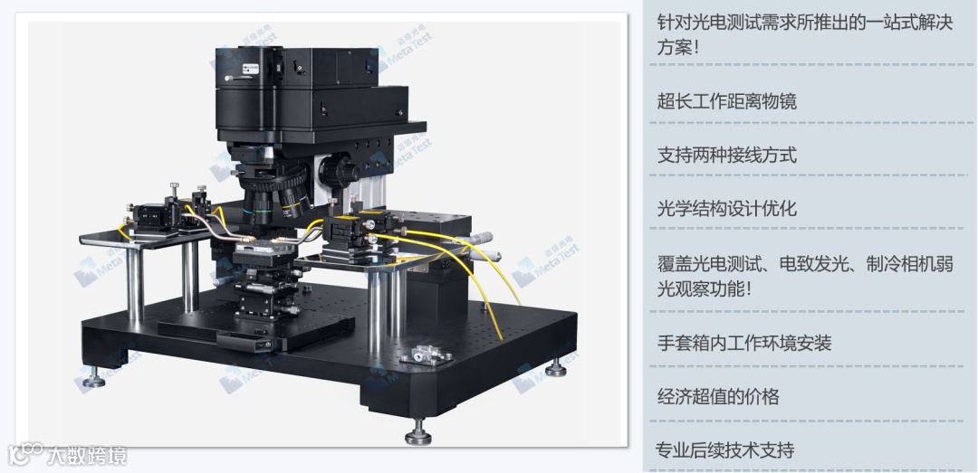 设备可升级加装积分球功能,测试电致发光色谱、光功率等;样品台特别设计为快速切换模式,标准样品台和积分球模块可相互替换,在一台设备上满足常规电学测试和积分球器件测试