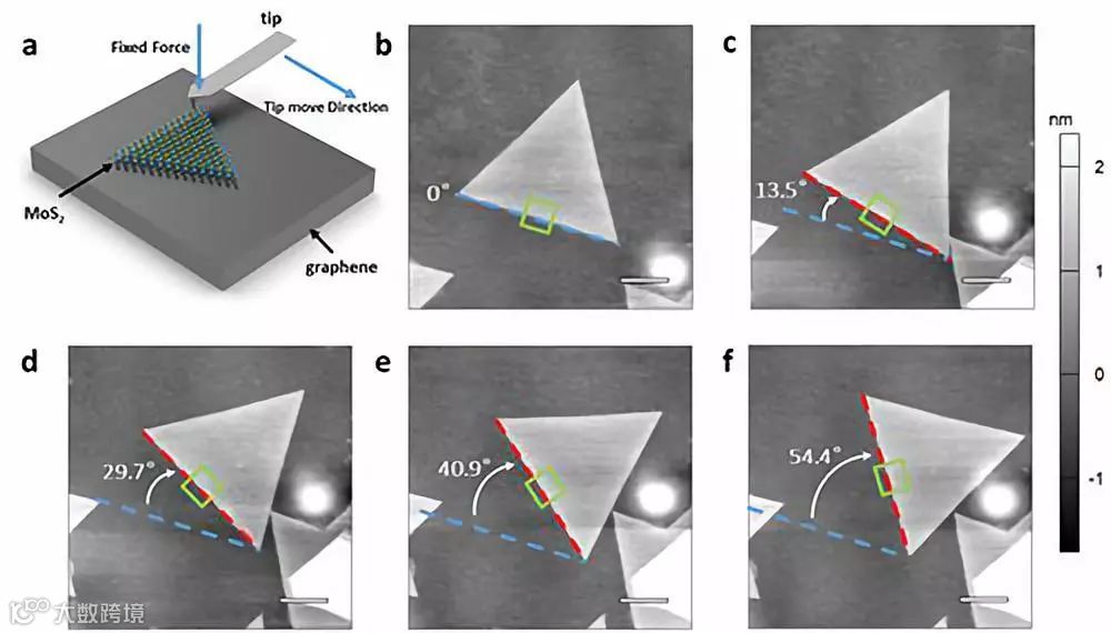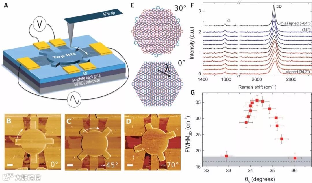 该团队使用氮化硼包裹石墨烯,顶层氮化硼片已经成型,所以AFM针尖可以推动它从而实现低至0.2°的扭曲角度。这种扭曲角度的调控对于电荷中和点等性能的调控具有重要意义。