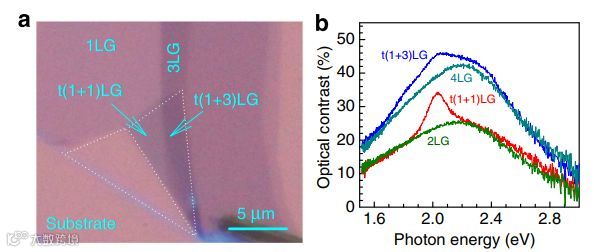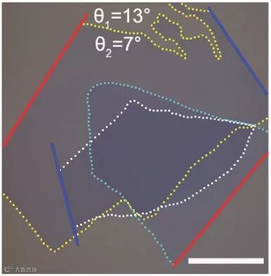 转角石墨烯具有与单层石墨烯和普通双层石墨烯不同的电学和光学性质,而且可以通过改变层与层之间的旋转角度对它的性质进行调控。该课题组通过对大面积单晶单层机械剥离石墨烯的“切割”-“旋转”-“堆叠”,完成转角双层和三层石墨烯的制备。通过飞秒激光微加工技术对高质量的机械剥离石墨烯进行图形处理,引入两条相互平行的“人造晶向”来对旋转角度进行控制,石墨烯旋转之后两条“人造晶向”之间的夹角等于转角石墨烯的旋转角度。利用这种方法制备的转角石墨烯旋转角度与设计角度之间的偏差小于0.1°他们研究了转角双层石墨烯的光电响应增强,研究了双转角三层石墨烯的拉曼光谱,证明双转角三层石墨烯可以视为两个具有相应旋转角度的转角双层石墨烯的叠加。