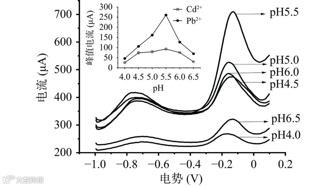 2.3.2 缓冲溶液pH对Pb2+和Cd2+检测的影响