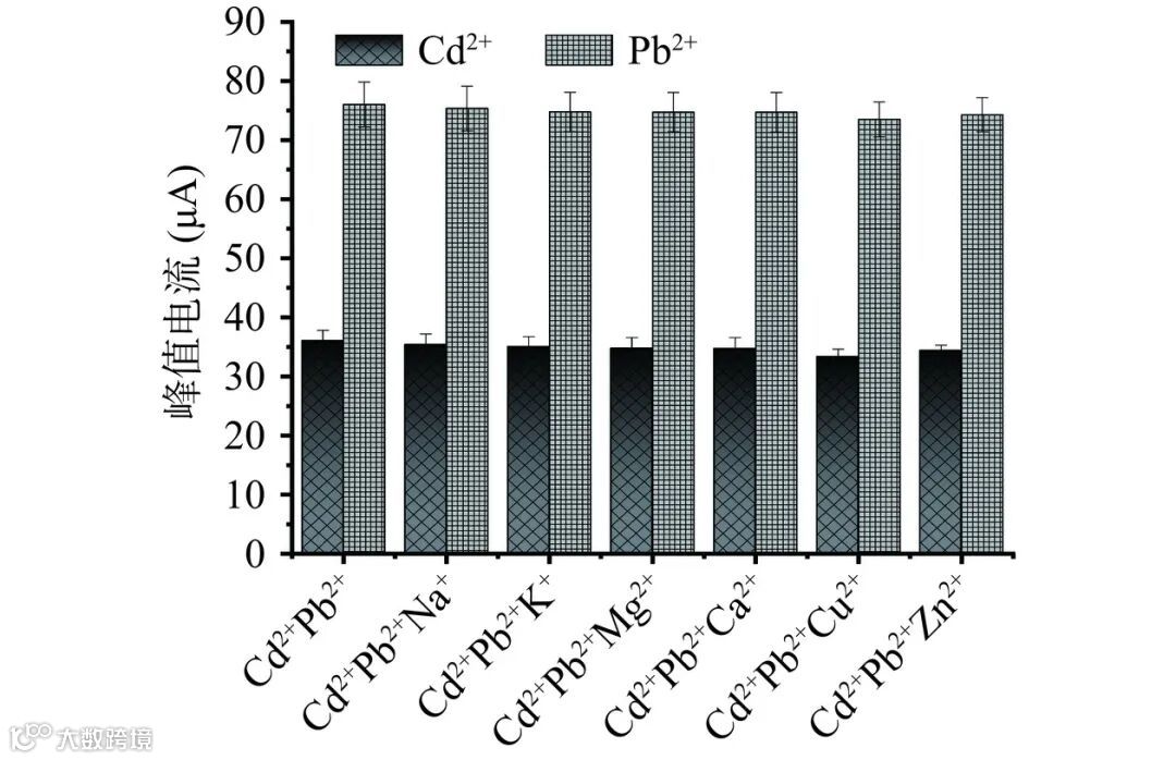图 11 干扰物质对修饰电极检测Cd2+和Pb2+ 的影响
