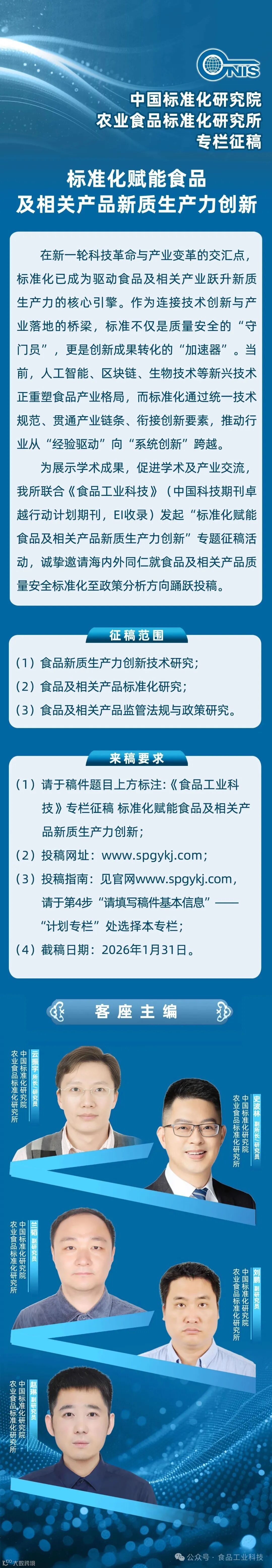 《食品工业科技》特邀主编专栏征稿