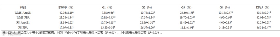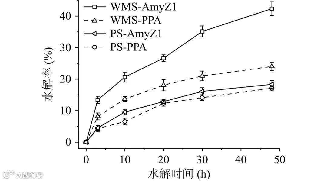 注:WMS-AmyZ1:AmyZ1 水解 WMS;WMS-PPA:PPA 水解WMS;PS-AmyZ1:AmyZ1 水解 PS;PS-PPA:PPA 水解 PS。