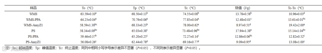 Table 3 Analysis of thermodynamic properties of two starches before and after enzymatic hydrolysis