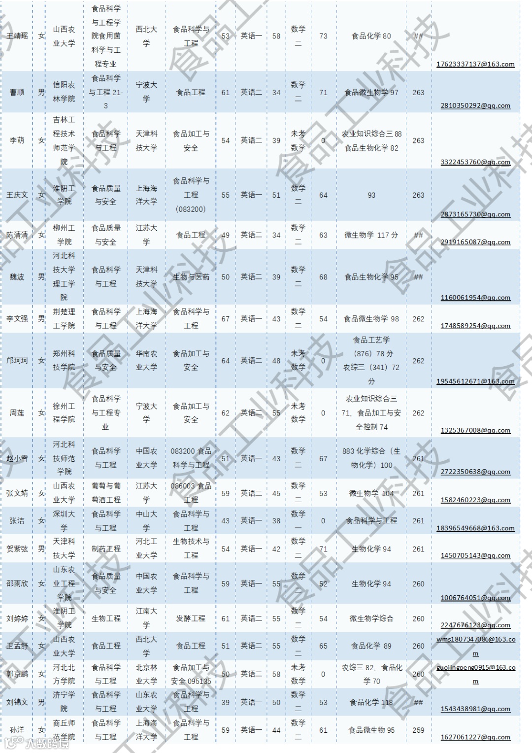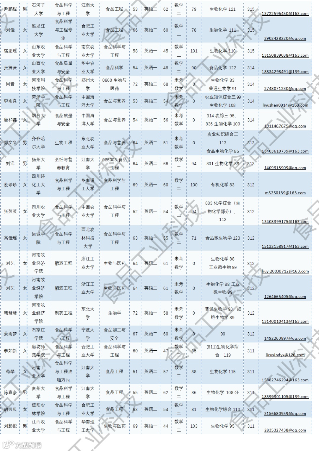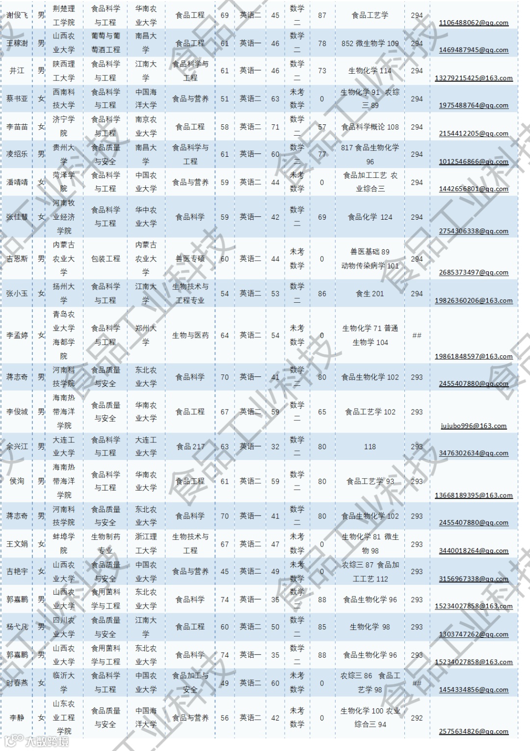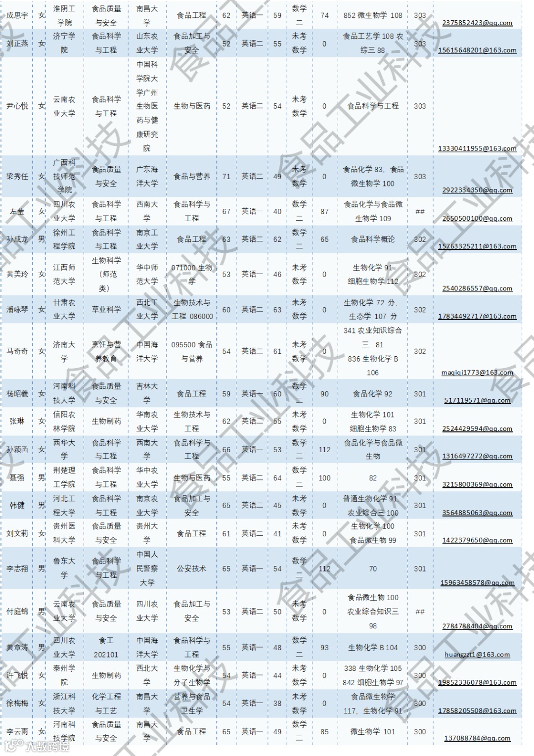 《食品工业科技》公益助力学生研招,图片显示度不佳,点击文末“阅读原文”或登录《食品工业科技》官网www.spgykj.com-考研调剂版块下载Excel版学生信息。图中隐去了学生的部分信息及电话,如有需要,请联系我们: