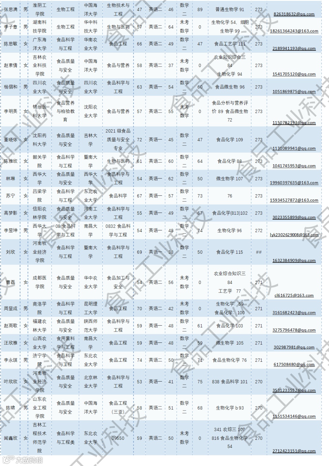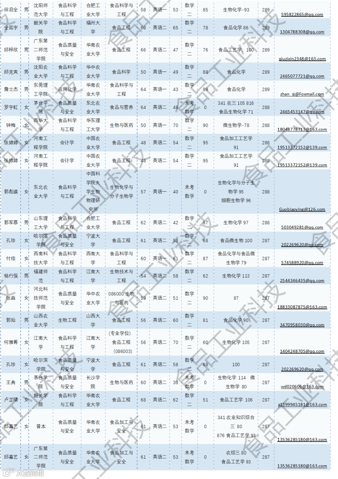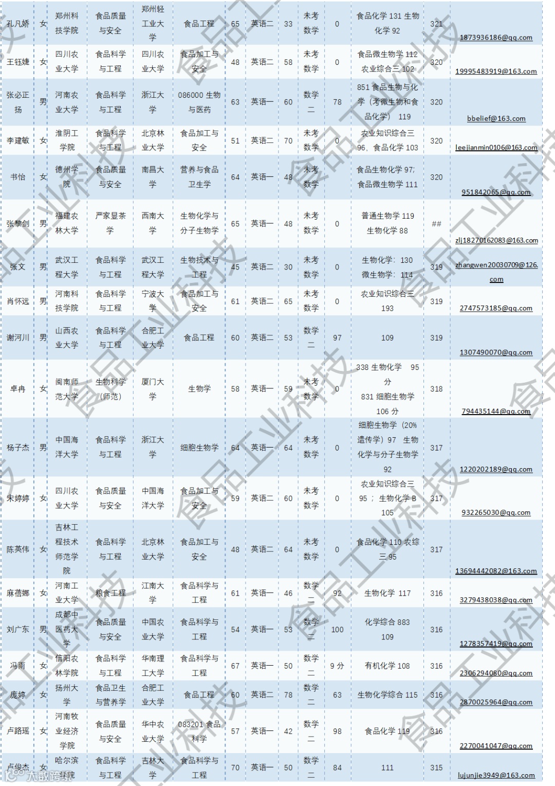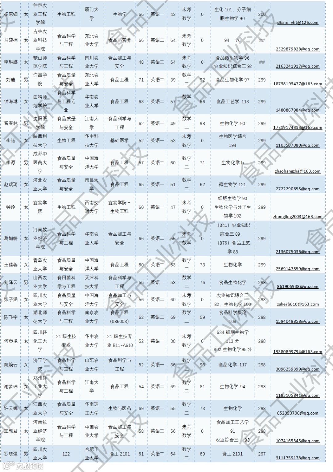 《食品工业科技》公益助力学生研招,图片显示度不佳,点击文末“阅读原文”或登录《食品工业科技》官网www.spgykj.com-考研调剂版块下载Excel版学生信息。图中隐去了学生的部分信息及电话,如有需要,请联系我们: