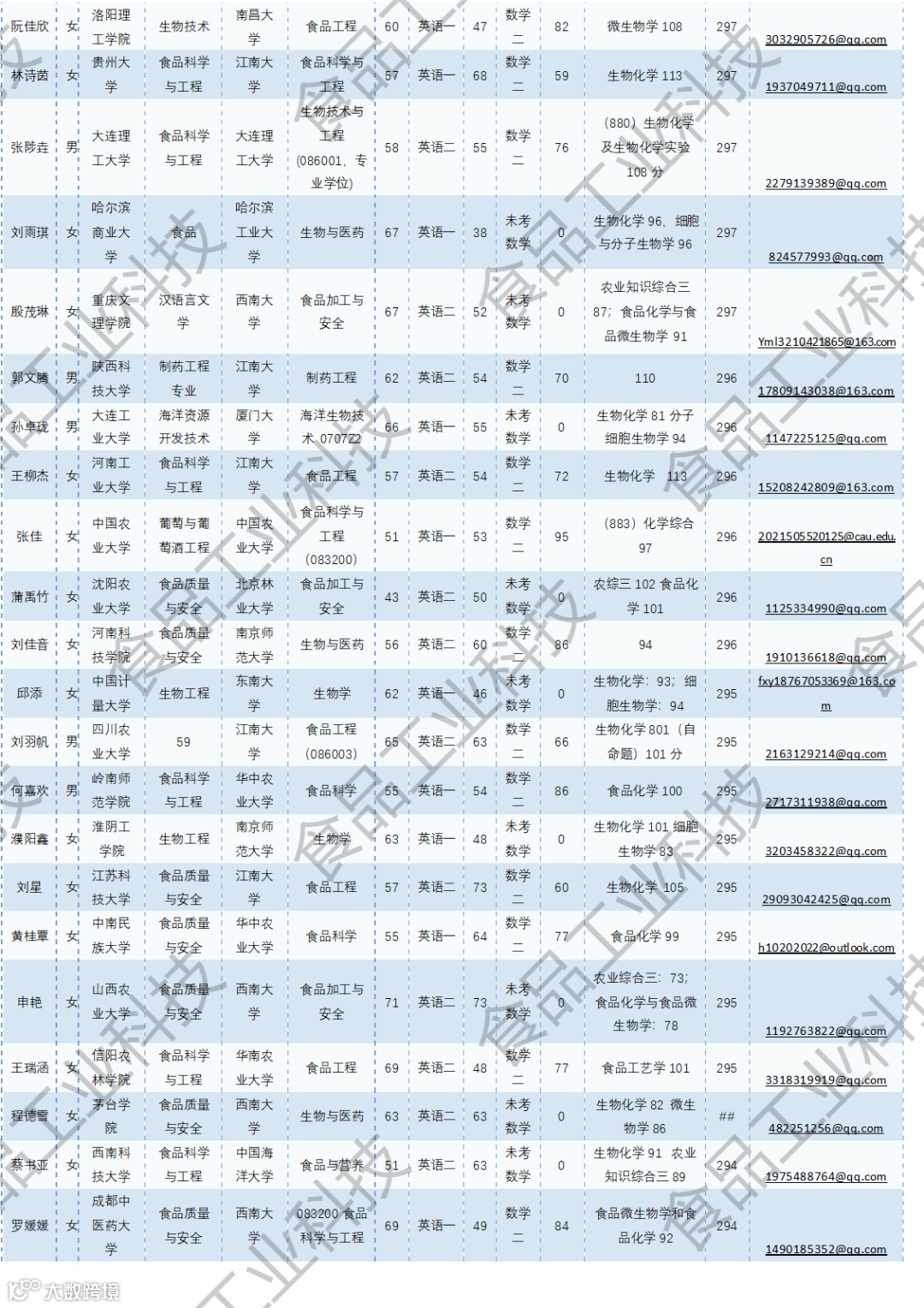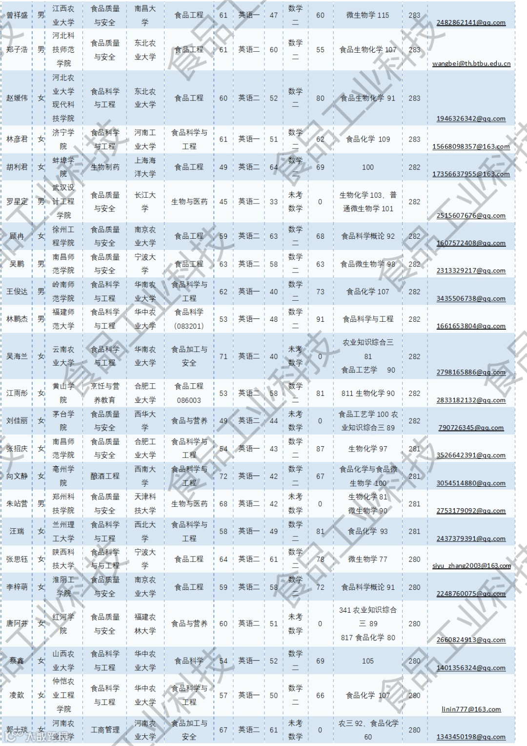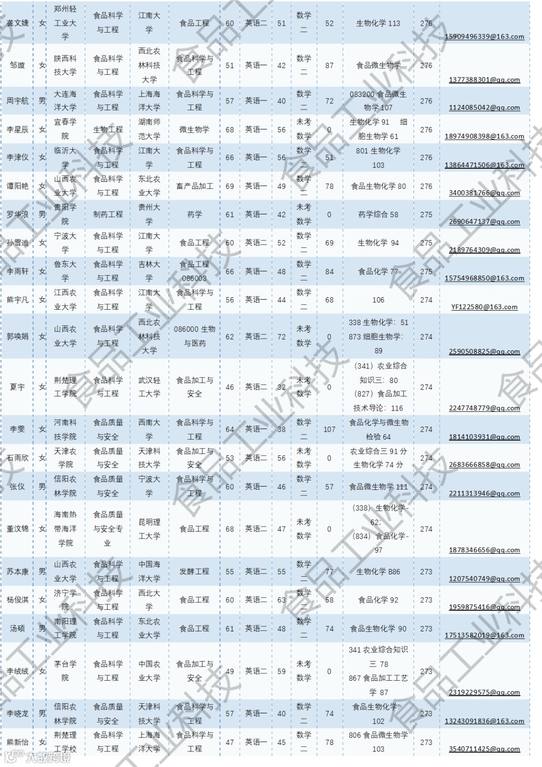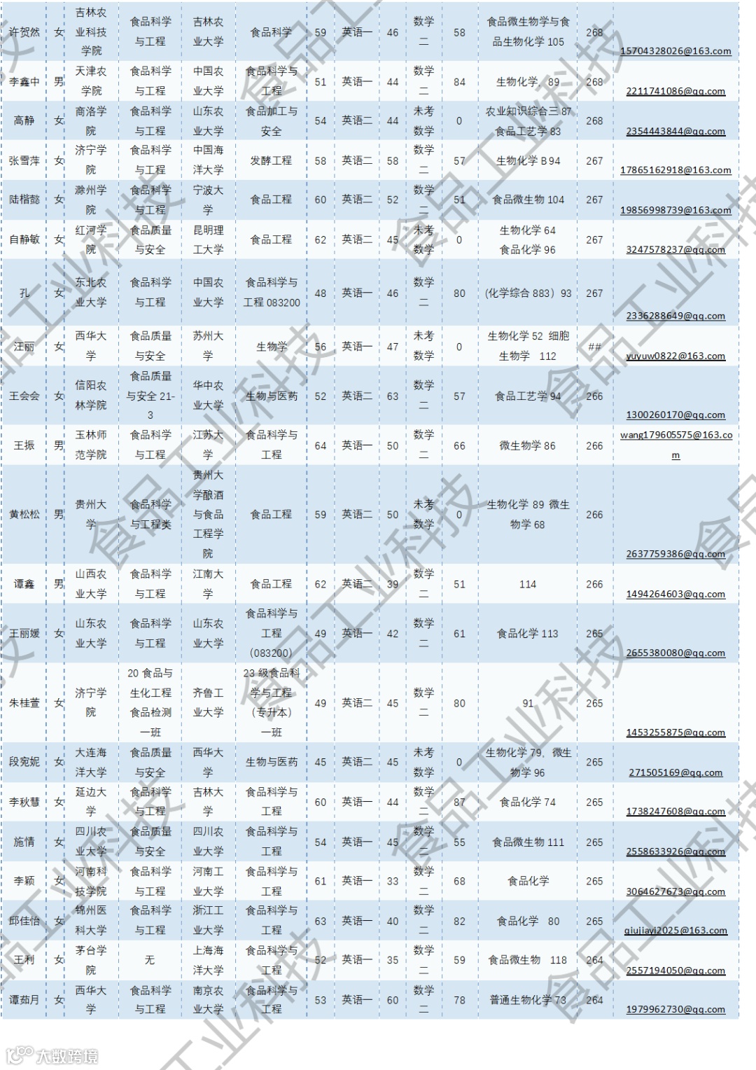 《食品工业科技》公益助力学生研招,图片显示度不佳,点击文末“阅读原文”或登录《食品工业科技》官网www.spgykj.com-考研调剂版块下载Excel版学生信息。图中隐去了学生的部分信息及电话,如有需要,请联系我们: