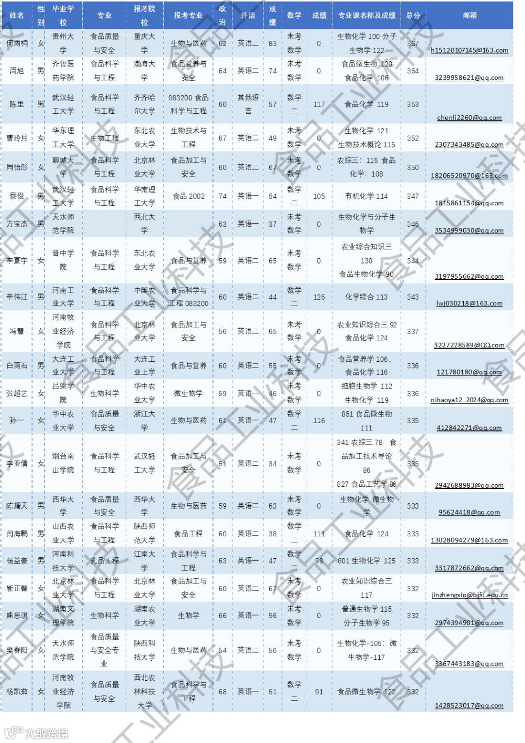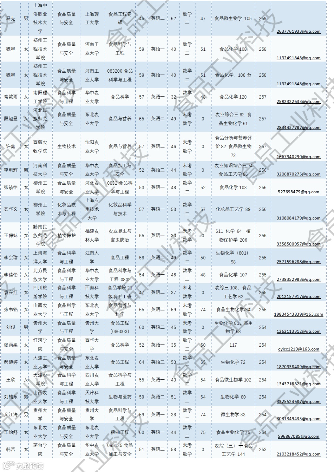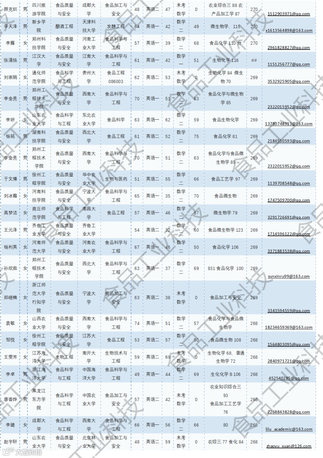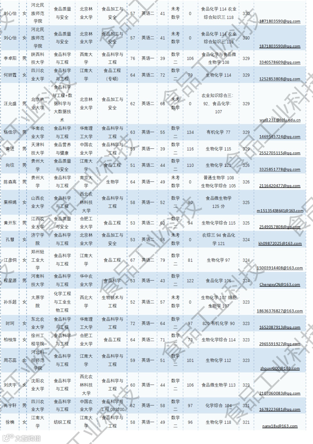 《食品工业科技》公益助力学生研招,图片显示度不佳,点击文末“阅读原文”或登录《食品工业科技》官网www.spgykj.com-考研调剂版块下载Excel版学生信息。图中隐去了学生的部分信息及电话,如有需要,请联系我们: