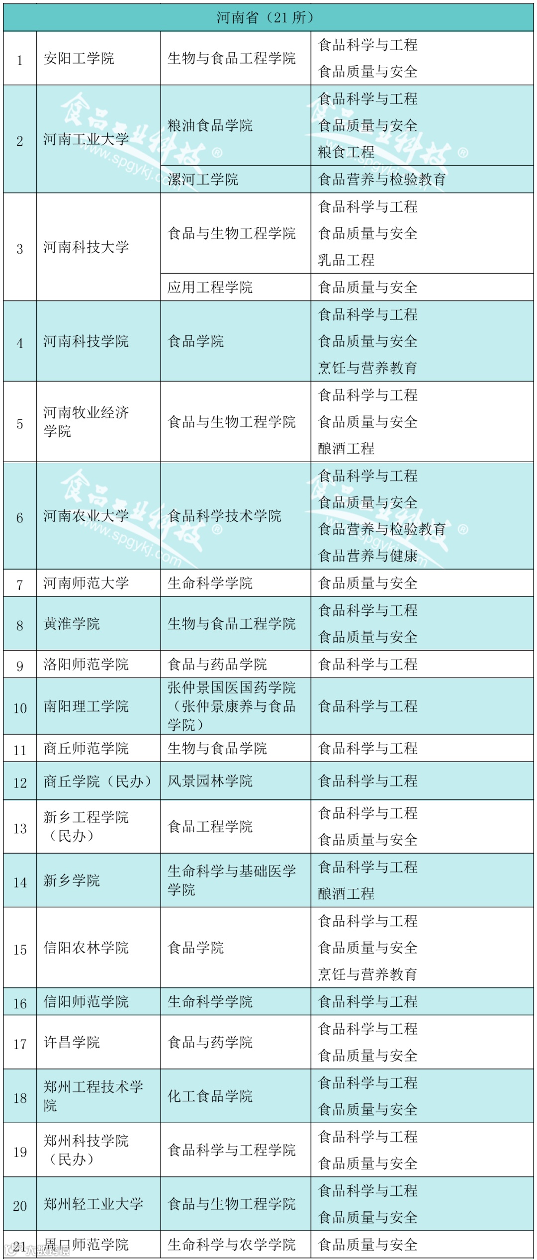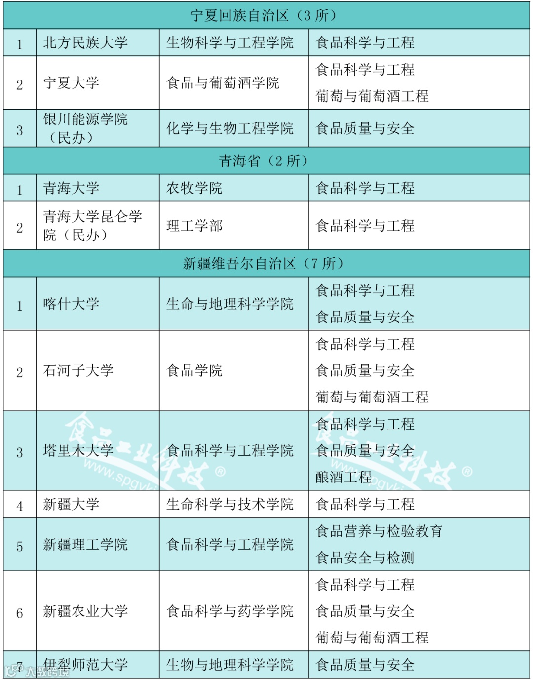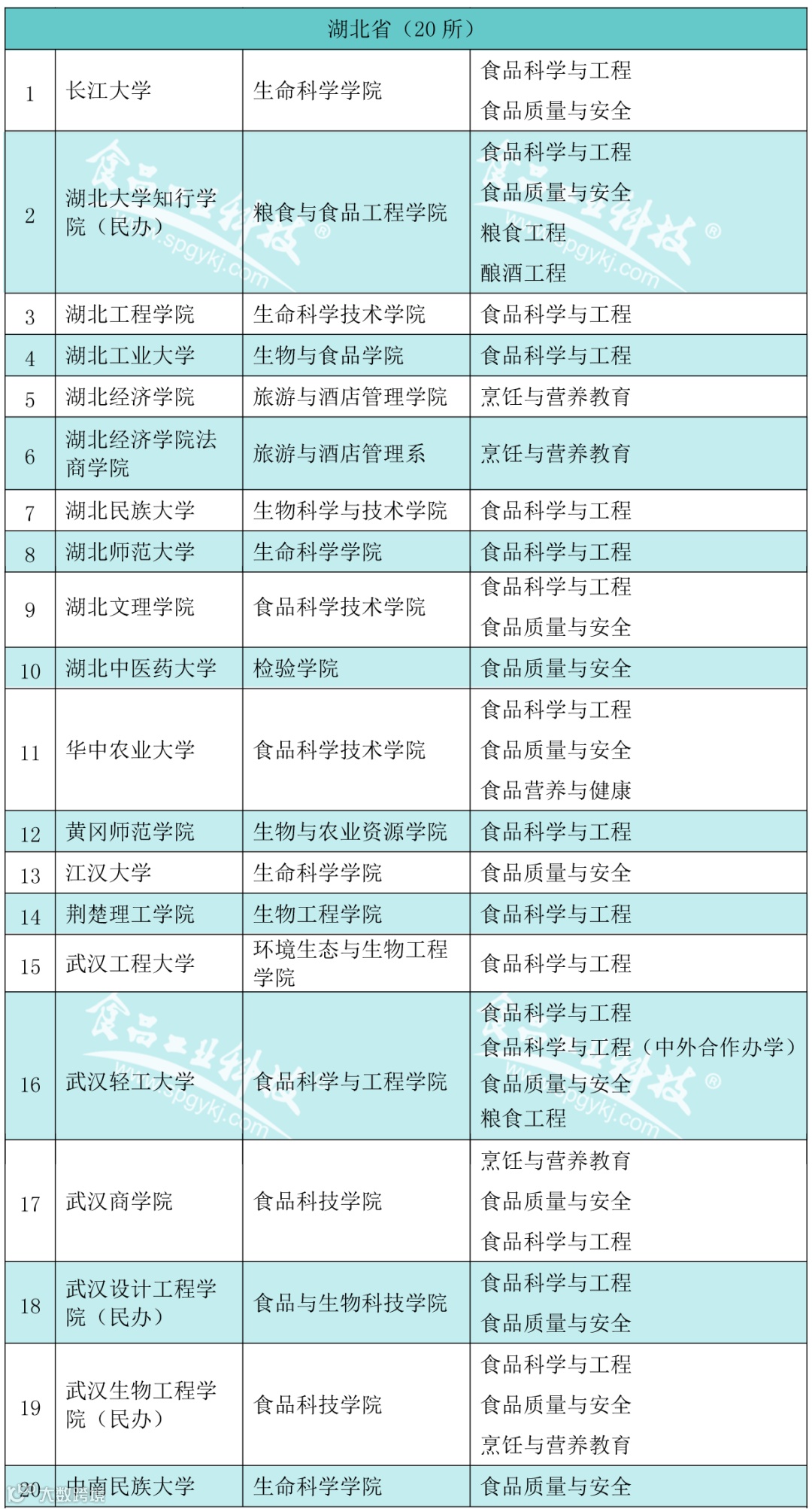2020年2月21日,教育部发布的《普通高等学校本科专业目录(2020年版)》食品科学与工程类专业包括食品科学与工程、食品质量与安全、粮食工程、乳品工程、酿酒工程、葡萄与葡萄酒工程、食品营养与检验教育、烹饪与营养教育、食品安全与检测食品营养与健康、食用菌科学与工程、白酒酿造工程共12个专业)。为此,《食品工业科技》杂志社特邀内蒙古农业大学食品科学与工程学院赵丽芹教授对我国(不含港澳台)开设食品科学与工程类工科专业的本科高校、二级学院(系)及专业进行了收集。