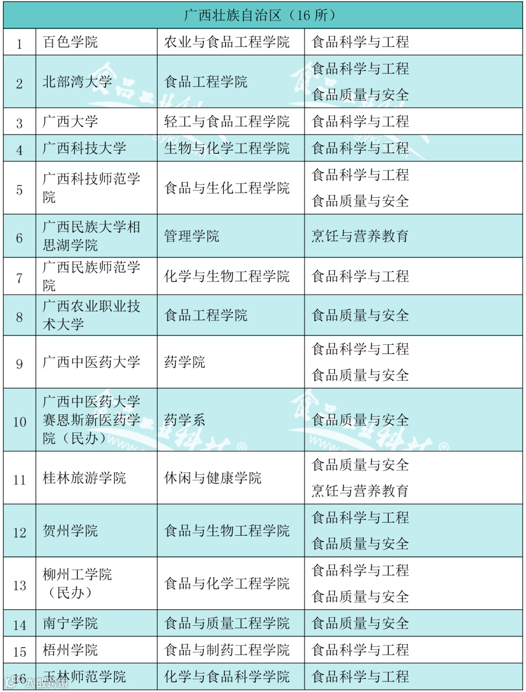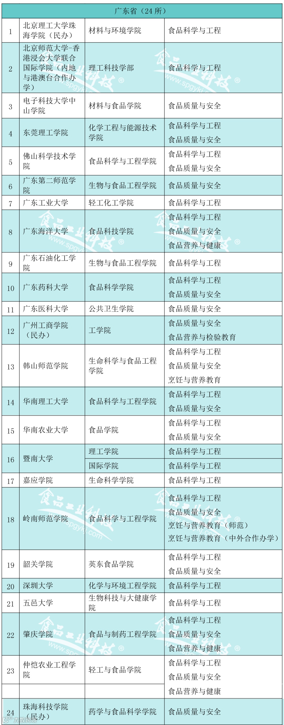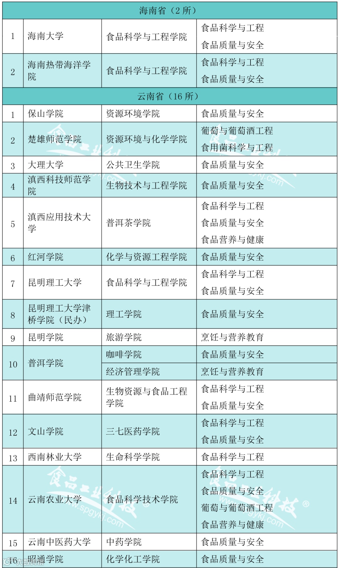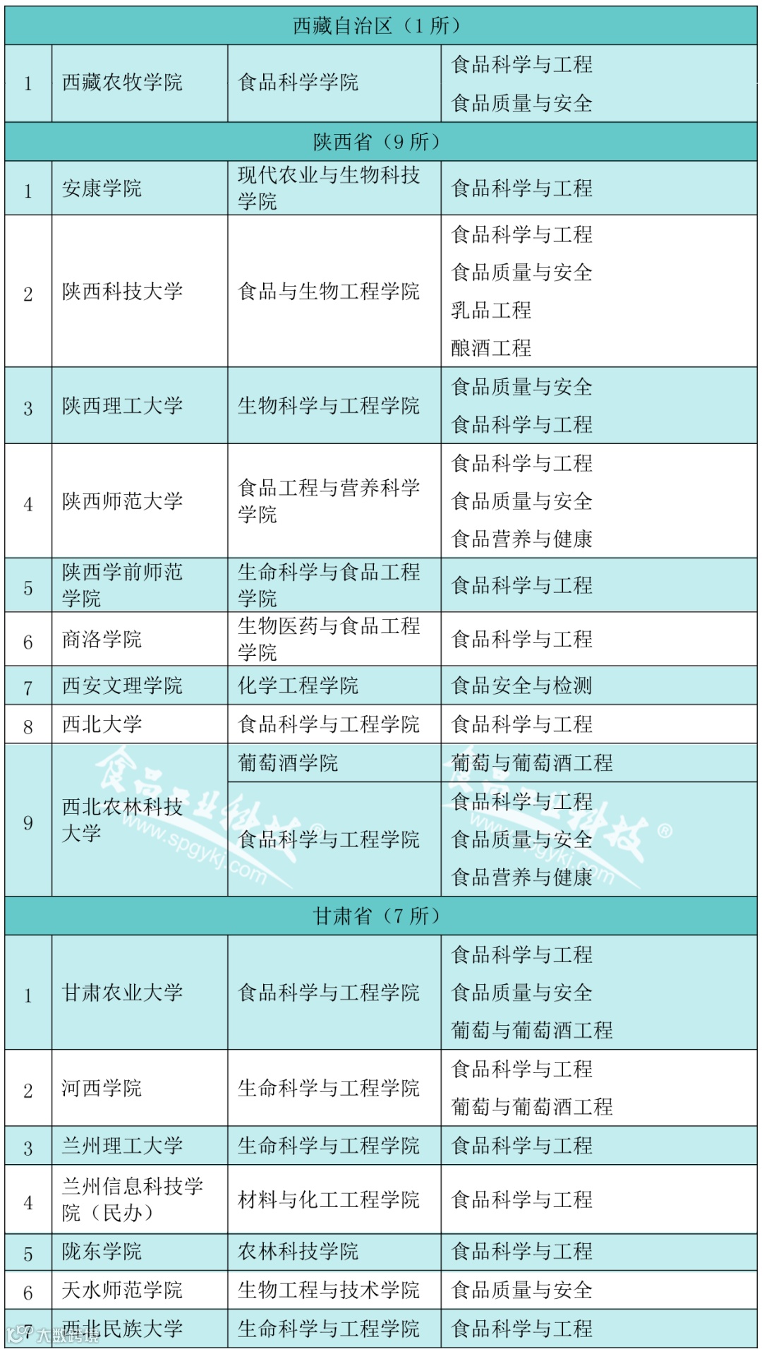 2020年2月21日,教育部发布的《普通高等学校本科专业目录(2020年版)》食品科学与工程类专业包括食品科学与工程、食品质量与安全、粮食工程、乳品工程、酿酒工程、葡萄与葡萄酒工程、食品营养与检验教育、烹饪与营养教育、食品安全与检测食品营养与健康、食用菌科学与工程、白酒酿造工程共12个专业)。为此,《食品工业科技》杂志社特邀内蒙古农业大学食品科学与工程学院赵丽芹教授对我国(不含港澳台)开设食品科学与工程类工科专业的本科高校、二级学院(系)及专业进行了收集。