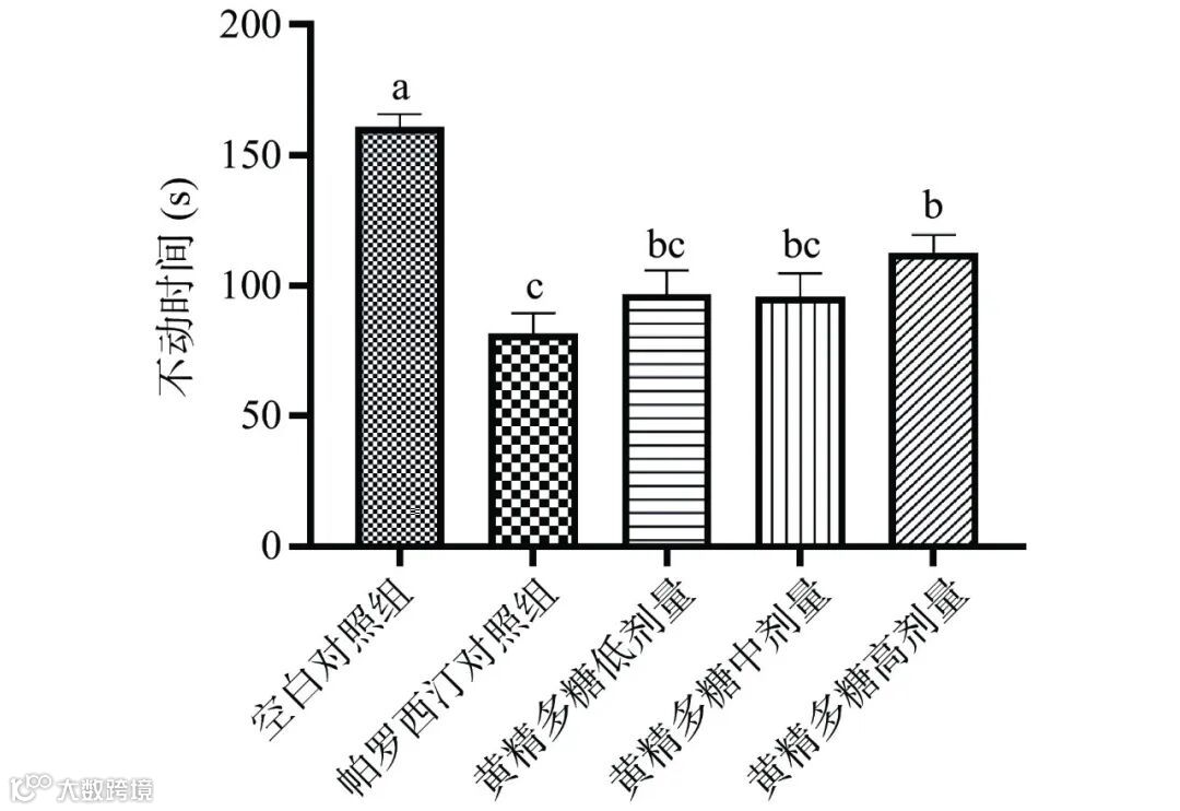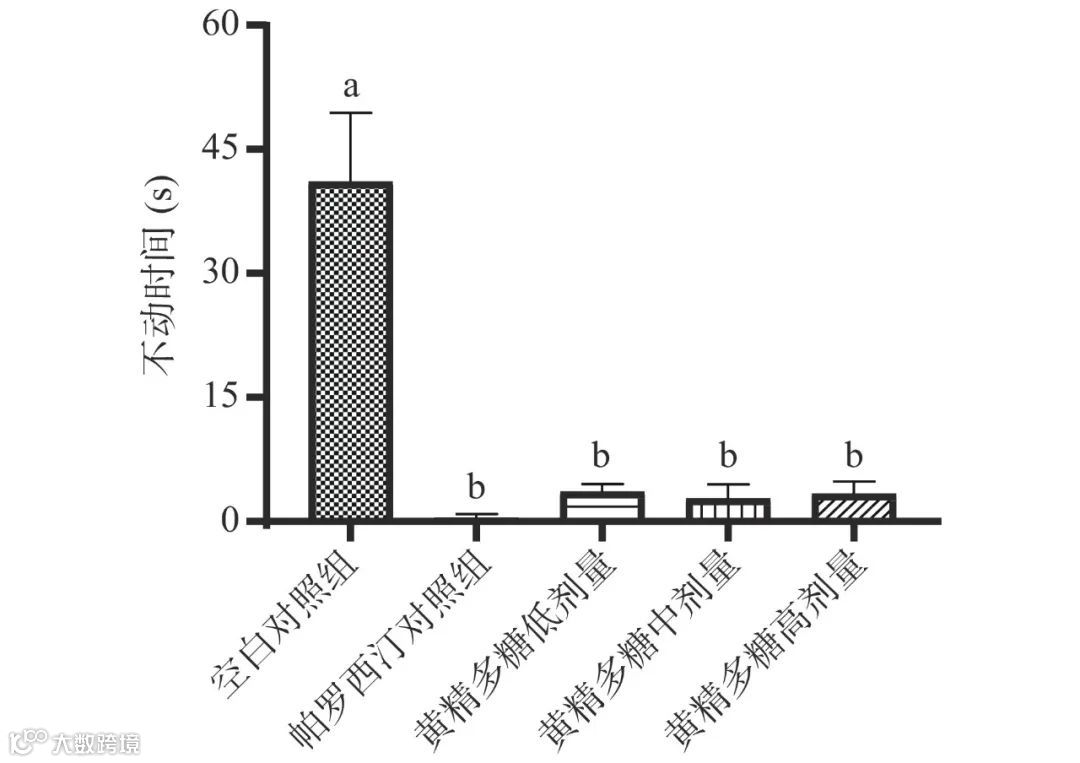 图 1 黄精多糖对小鼠悬尾绝望状态下不动时间的影响(Mean±SD, n=12)
