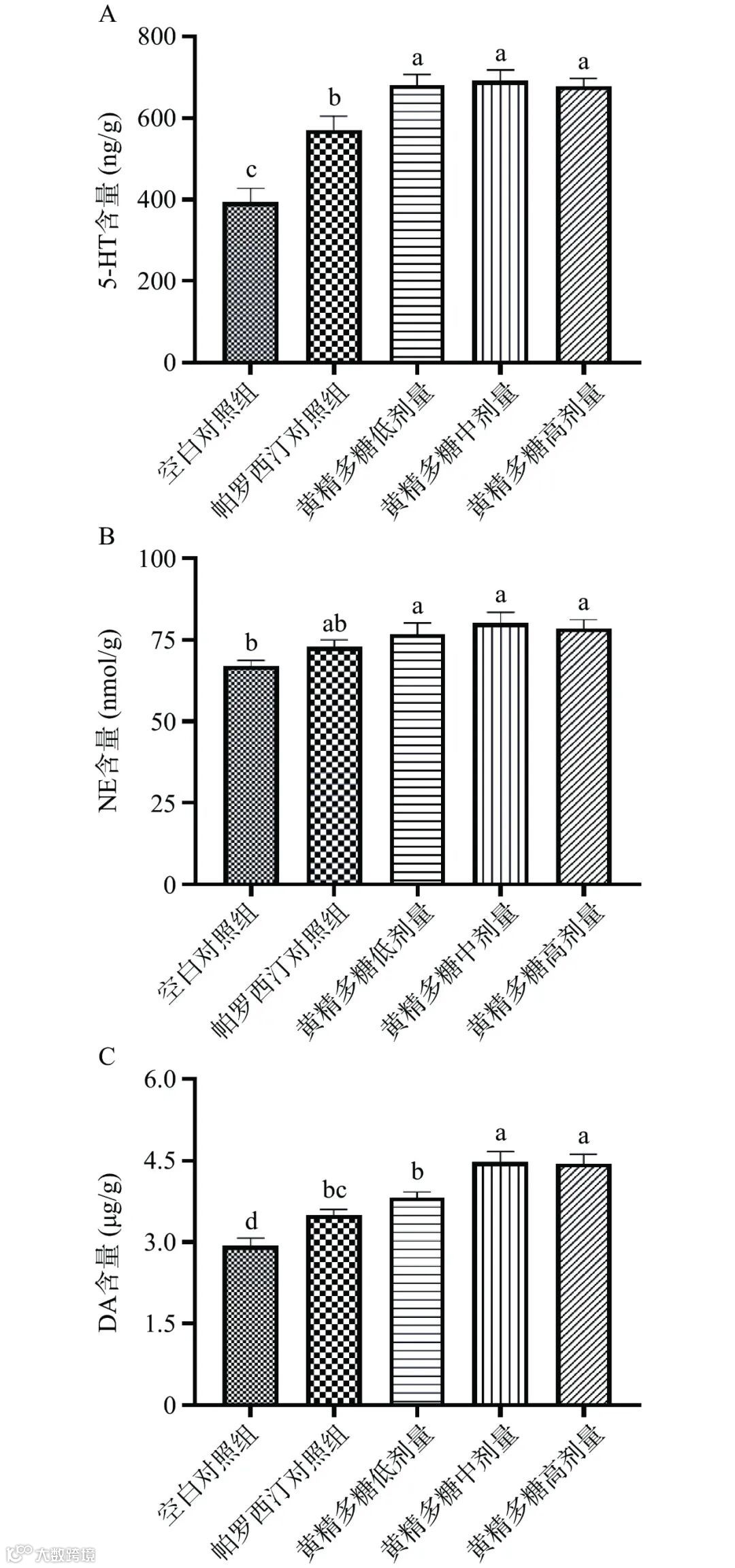 图 3 黄精多糖对小鼠皮层中神经递质水平的影响(Mean±SD,n=12)