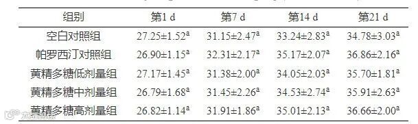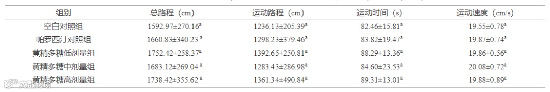 表 2 黄精多糖对小鼠空场自主活动度的影响(Mean±SD,n=12)
