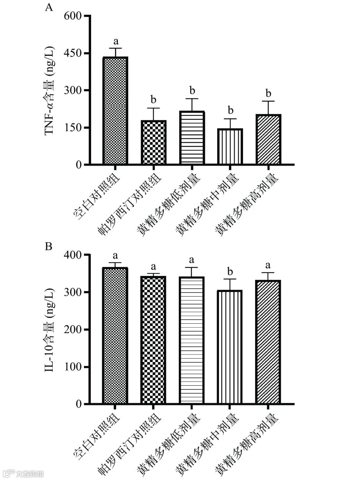 图 4 黄精多糖对小鼠血清中细胞因子水平的影响(Mean±SD,n=12)