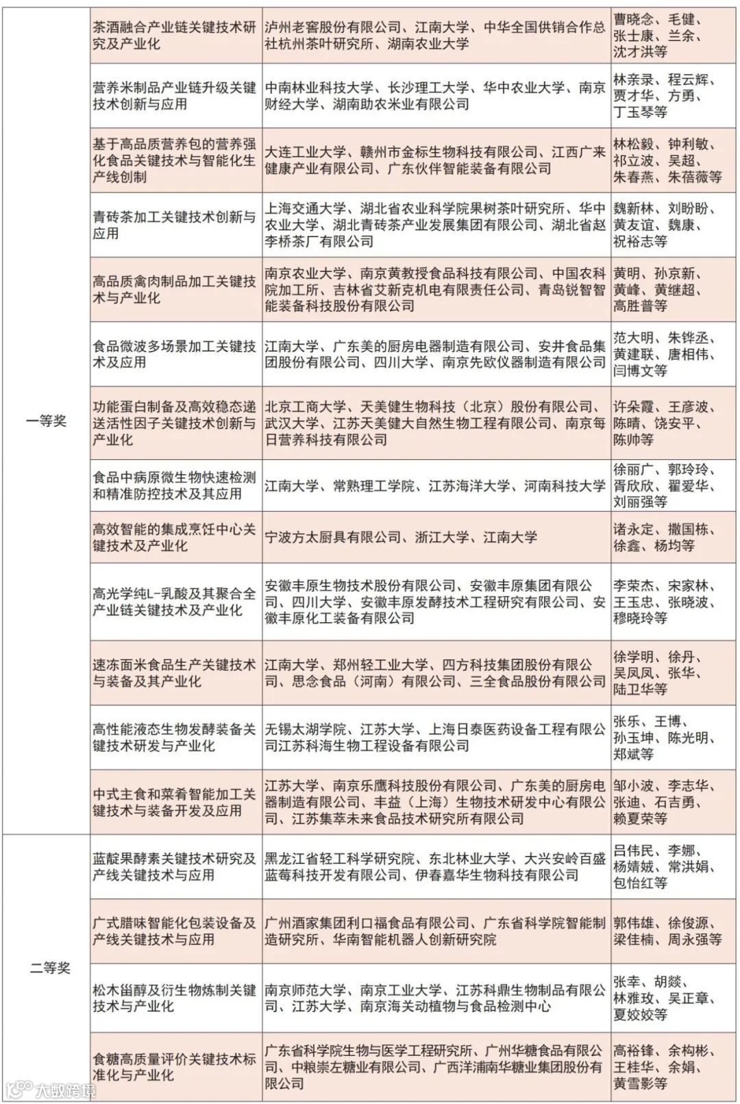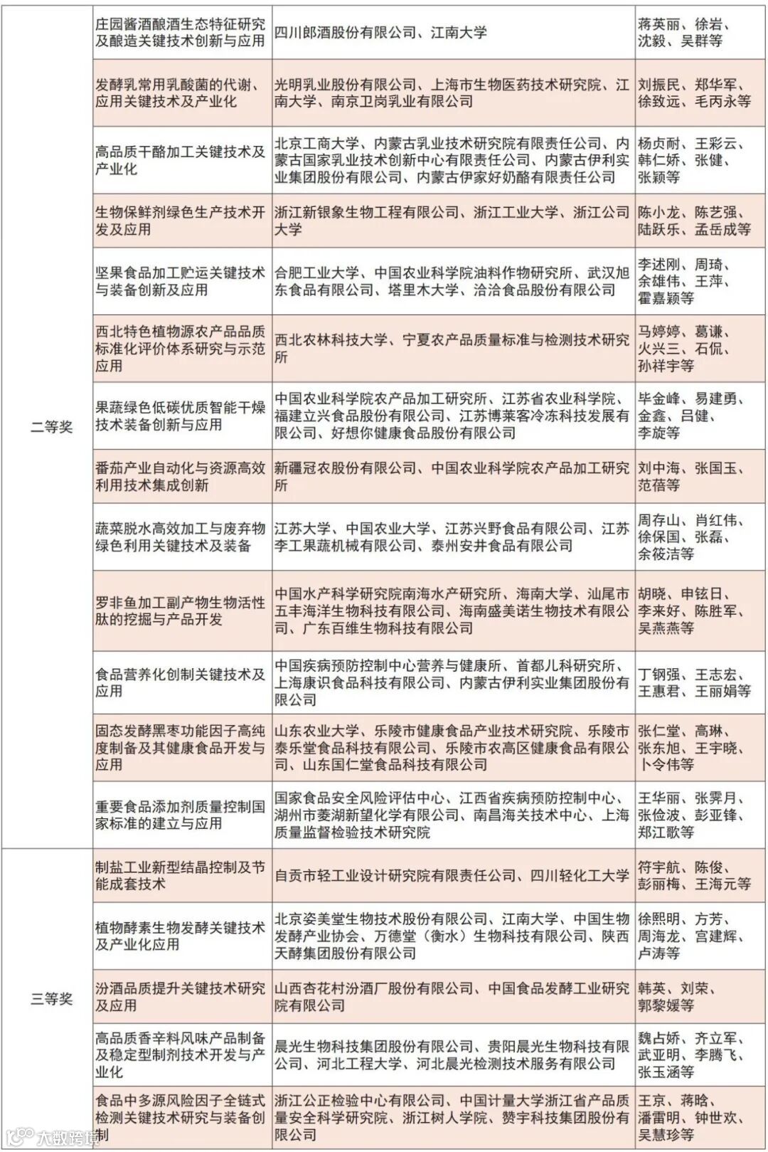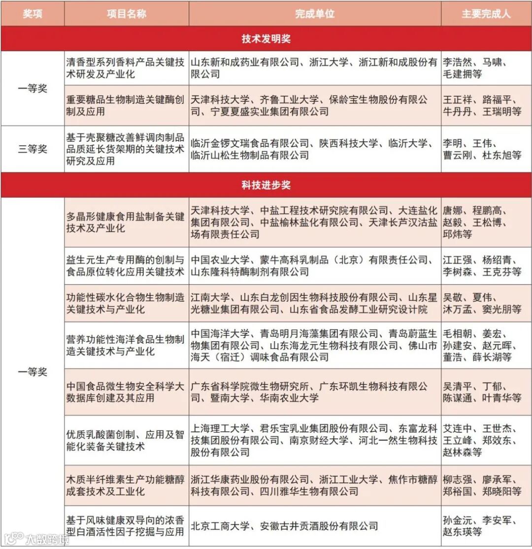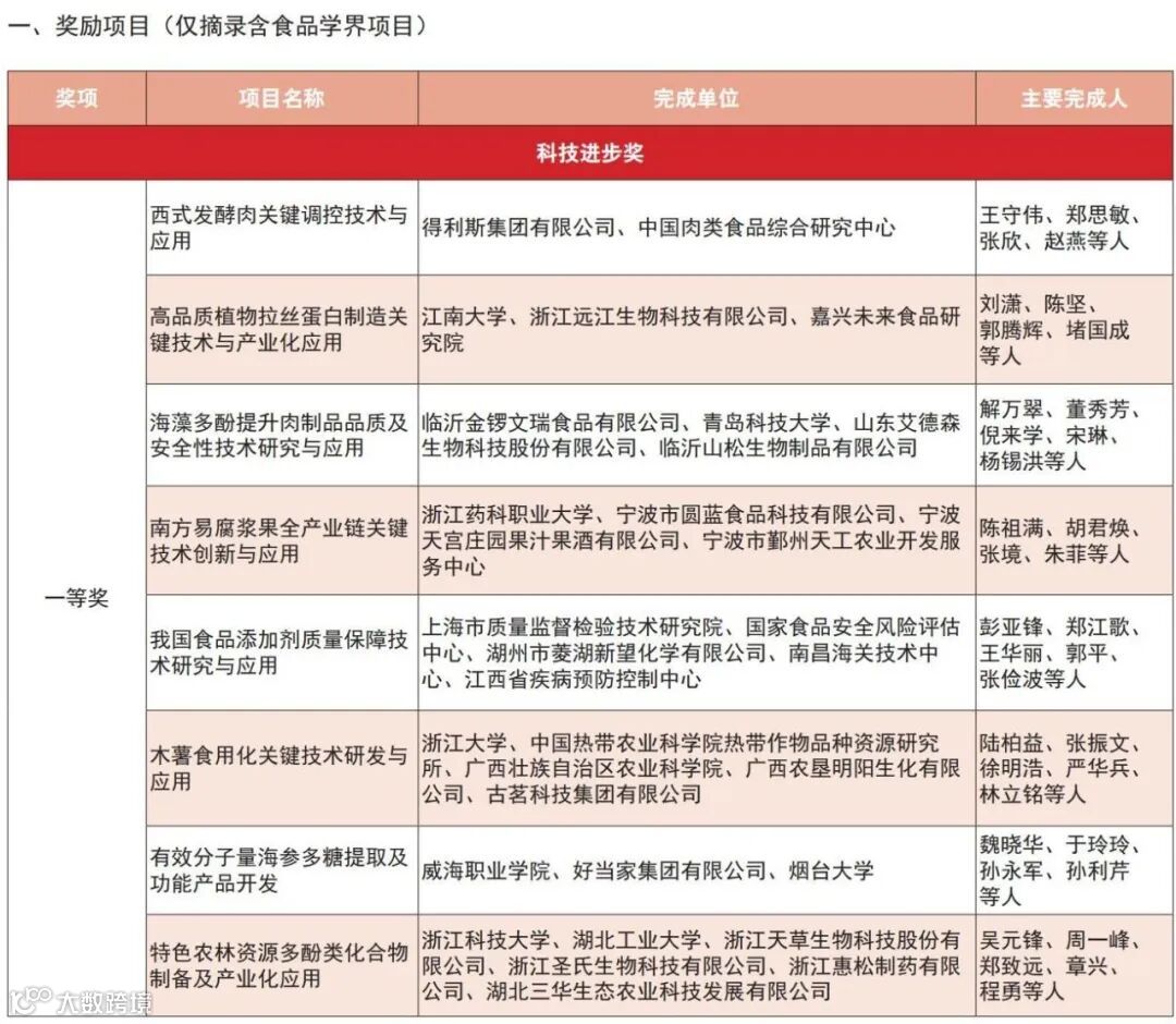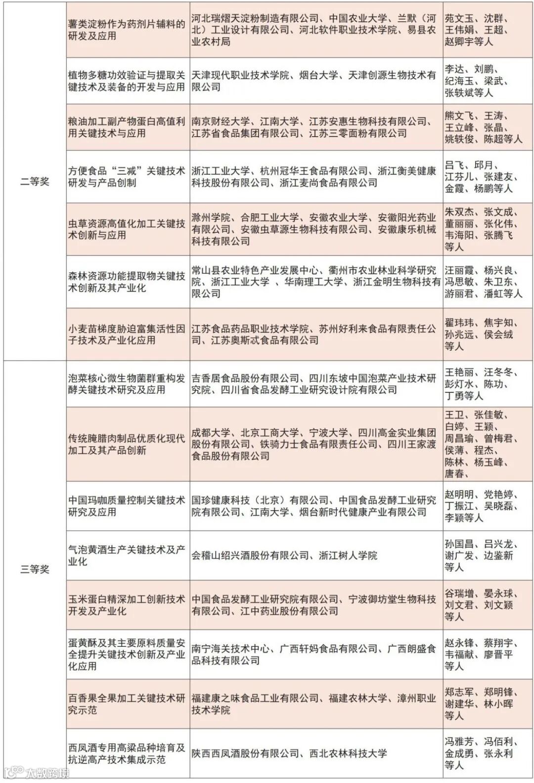 12月12日获2024年度中国轻工业联合会科学技术奖项目(仅摘录含食品学界项目):