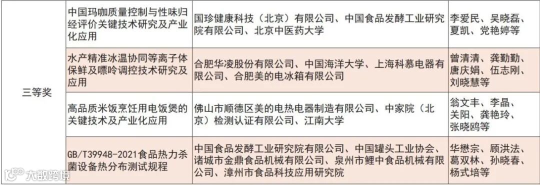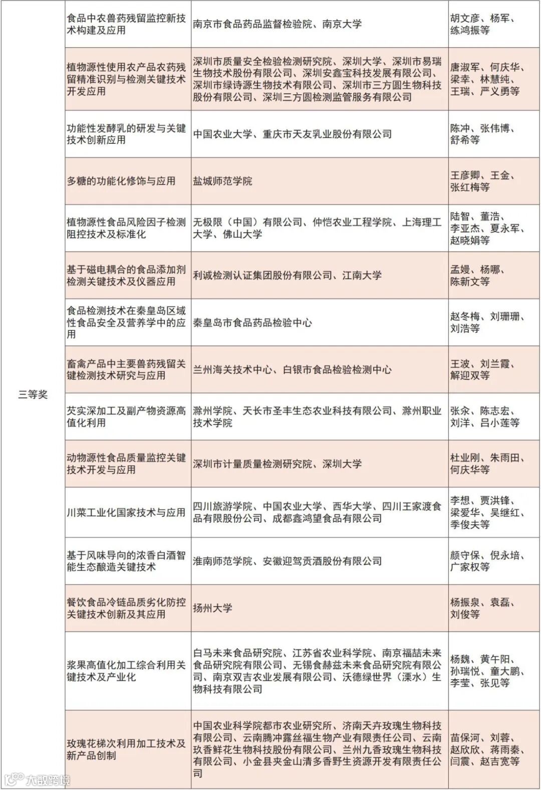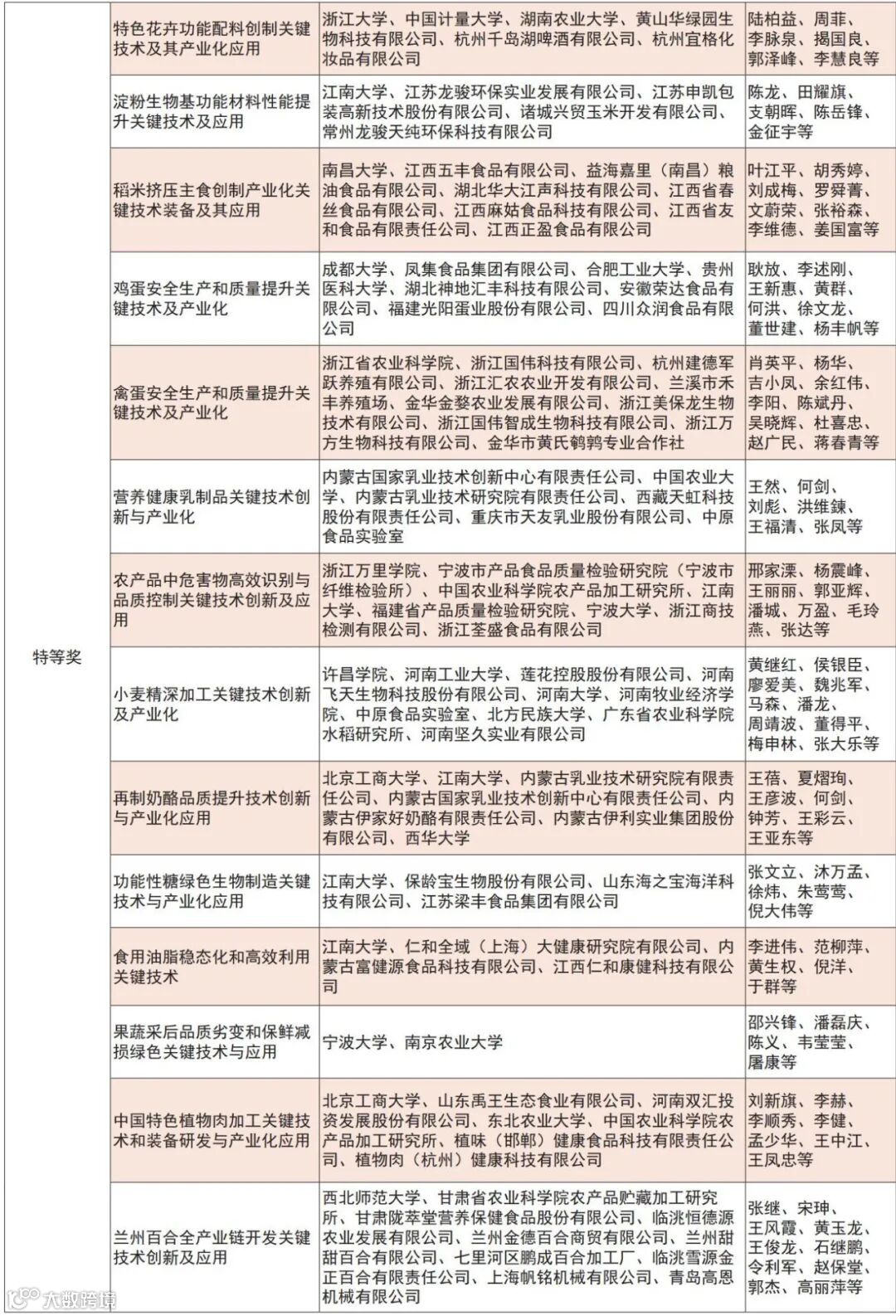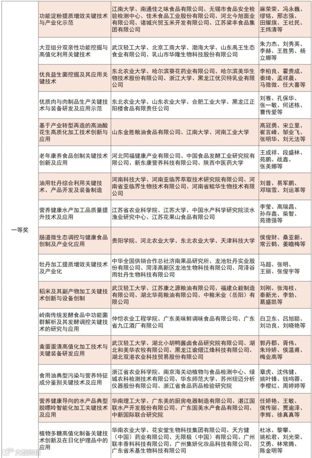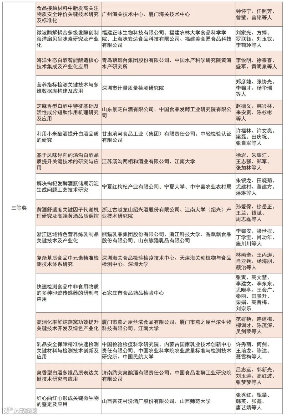 12月12日获2024年度中国轻工业联合会科学技术奖项目(仅摘录含食品学界项目):